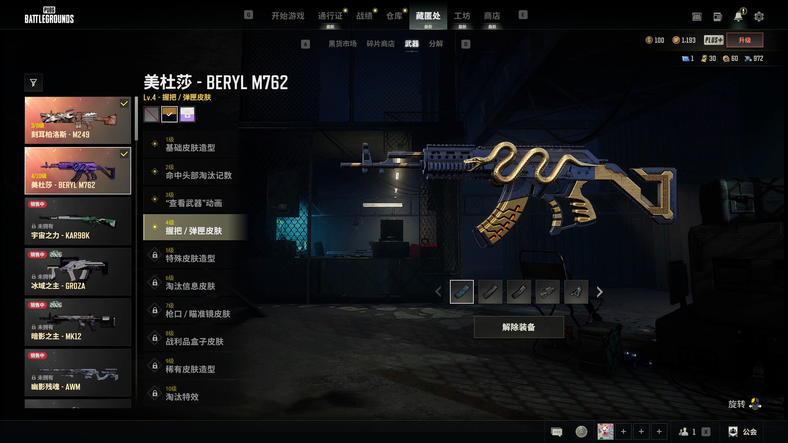 L154T 2成长2大厅 2级午夜98K 魔咒MK12 图纸X3 金色M762 金色滑雪镜 金面巾 沙滩宝贝 海洋独行 红桃皇 小兔快递
