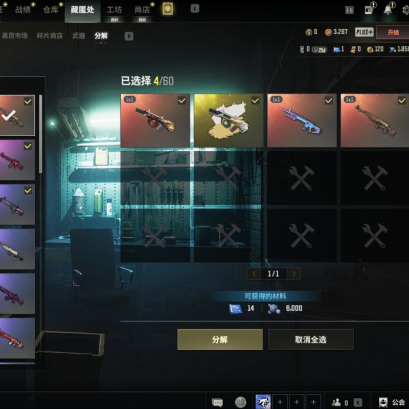 n283C 3级圣诞AK 红色烟雾弹 青龙ACE 金叶M4 金毛跑车 小恶魔 花臂 暗夜猎手 夏日优雅 2车皮