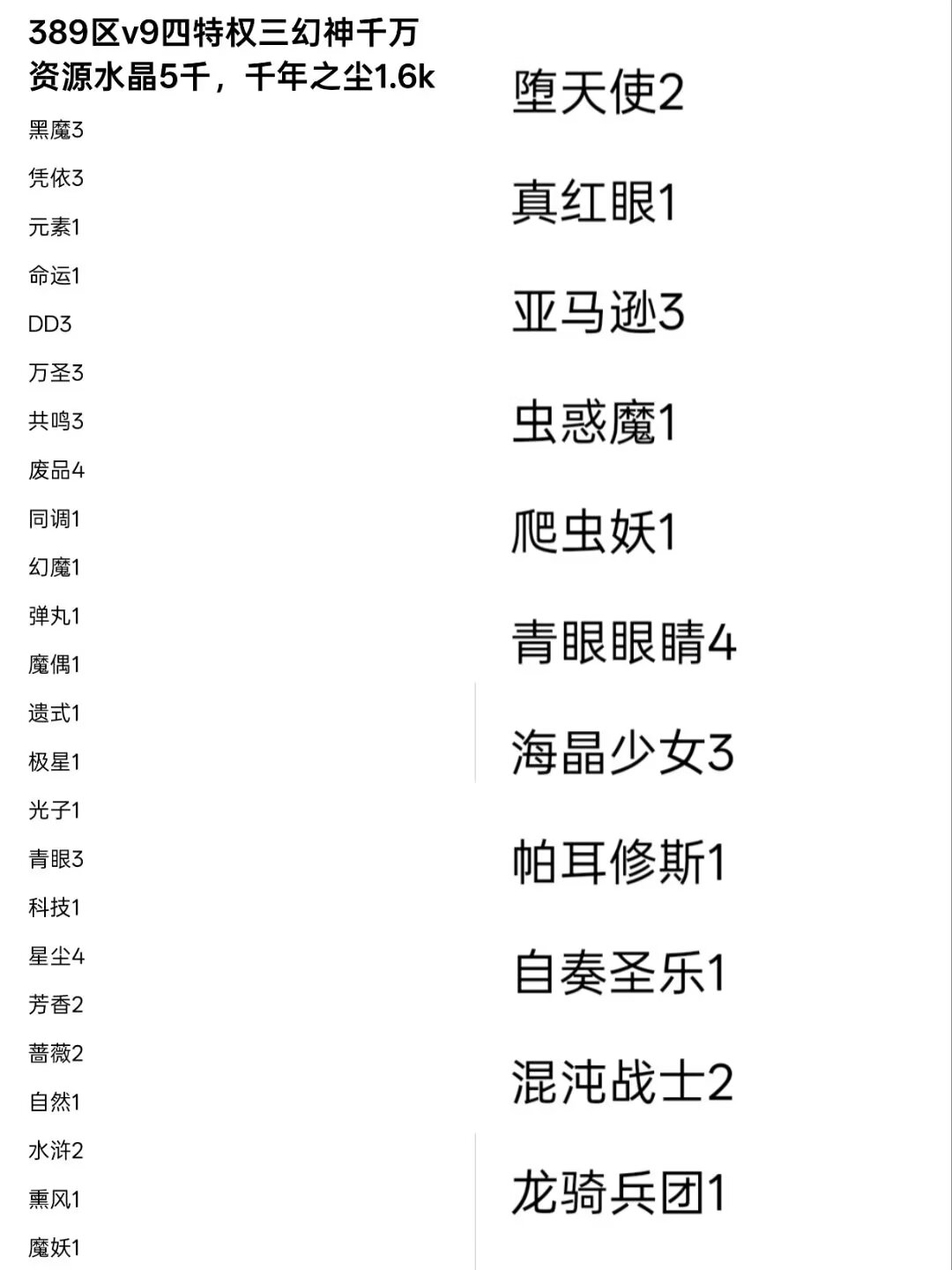 v9四特三幻神千万资源印记多,水晶5千,千年之尘1.6k