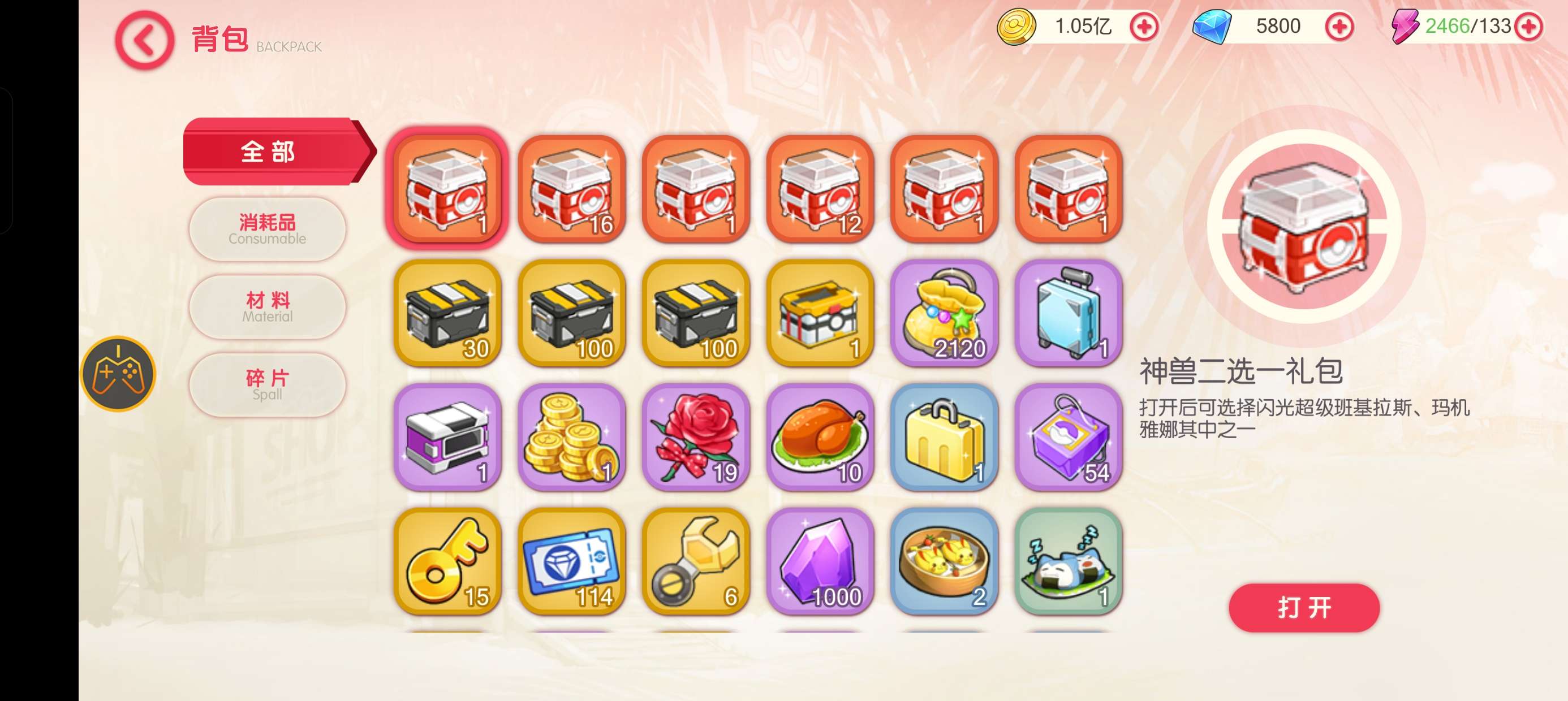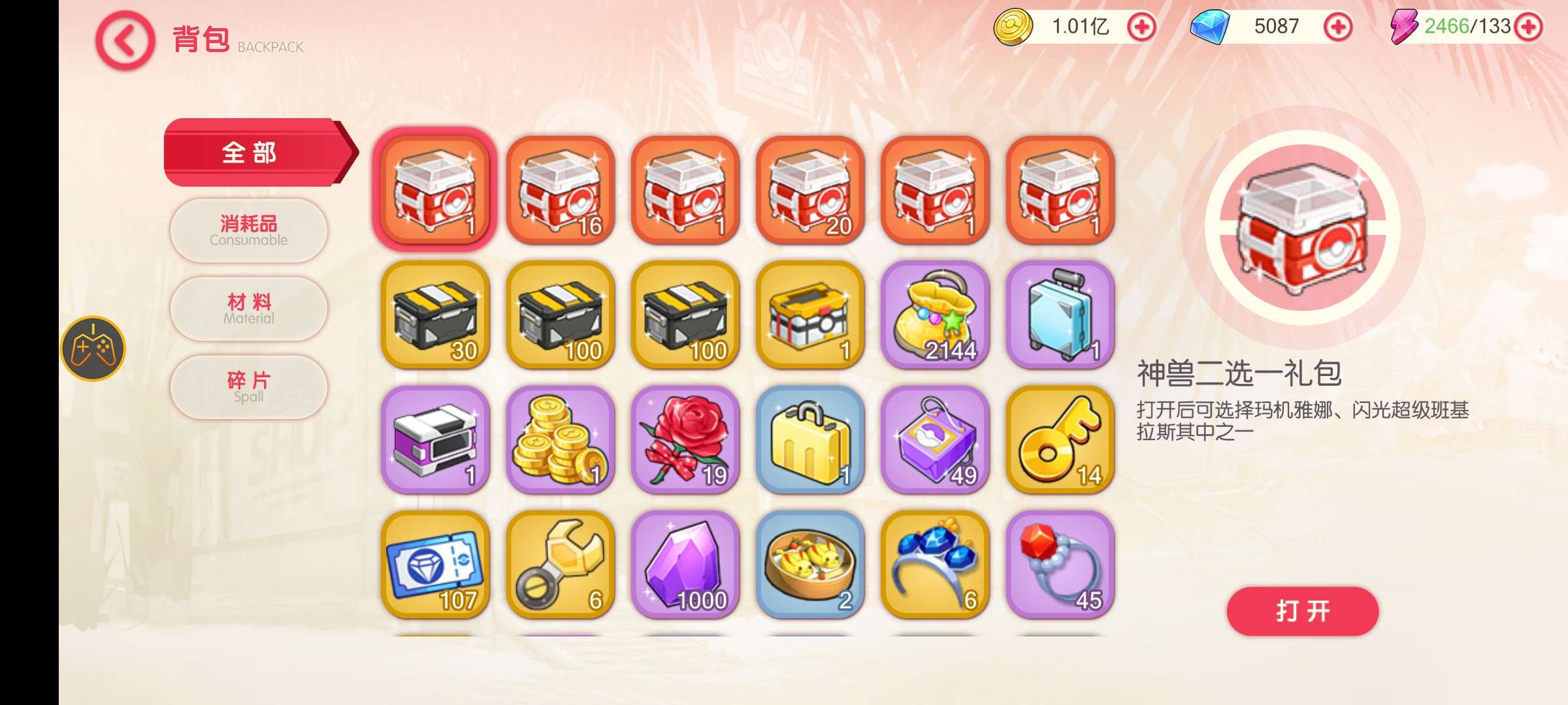 官服新区4橙携,水队白马带皮。等明年盾狗超进化,号里有160神兽碎片宝箱,可以开图鉴,也可以做Z觉