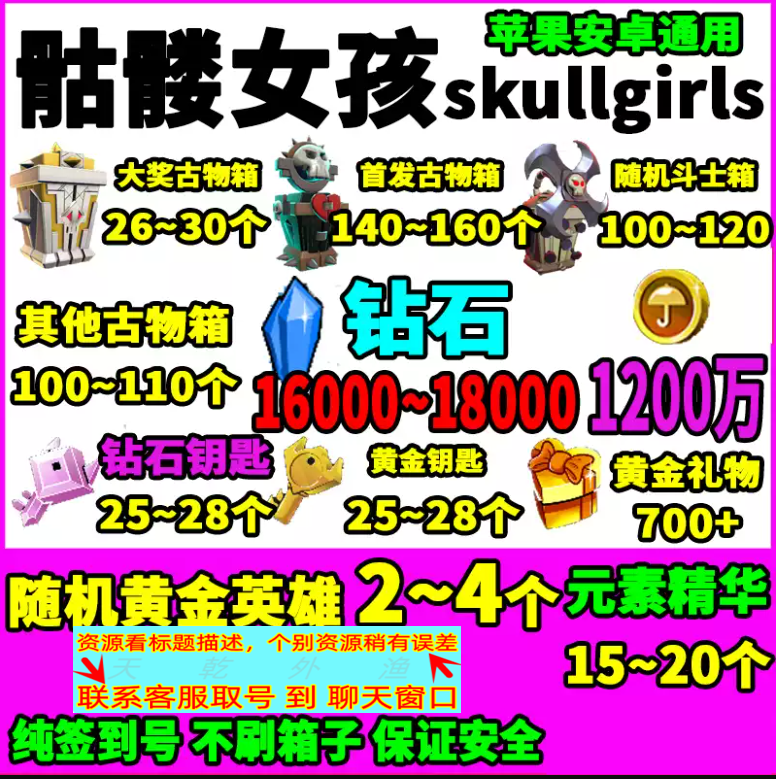 20000钻+1600万金币+嗜血名流-黑色大丽花或暗影傀儡-芙库尔