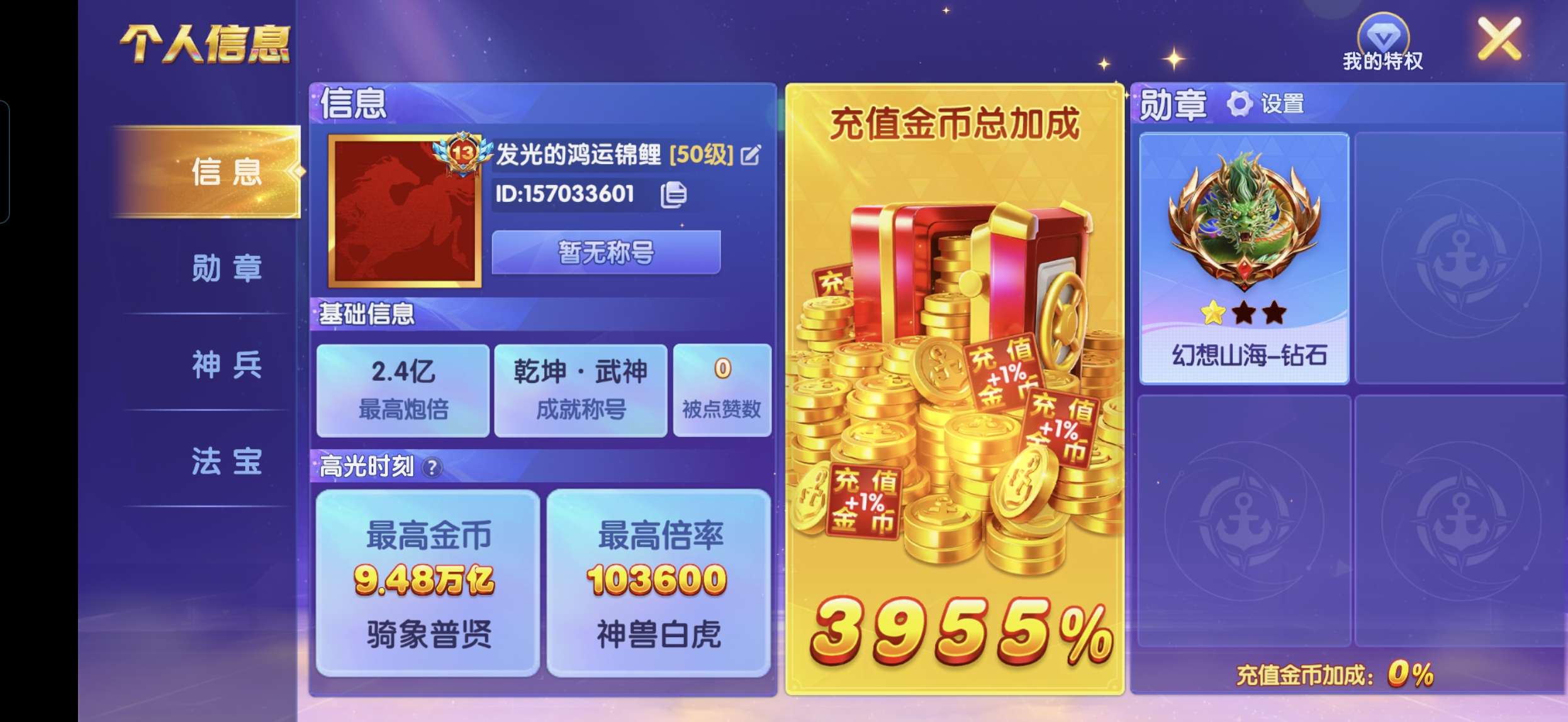 乐乐捕鱼贵族6+100万亿金币+2级万象+10多万蛋蛋5.7万扎子+女神天王羁绊!已解绑带号一起出