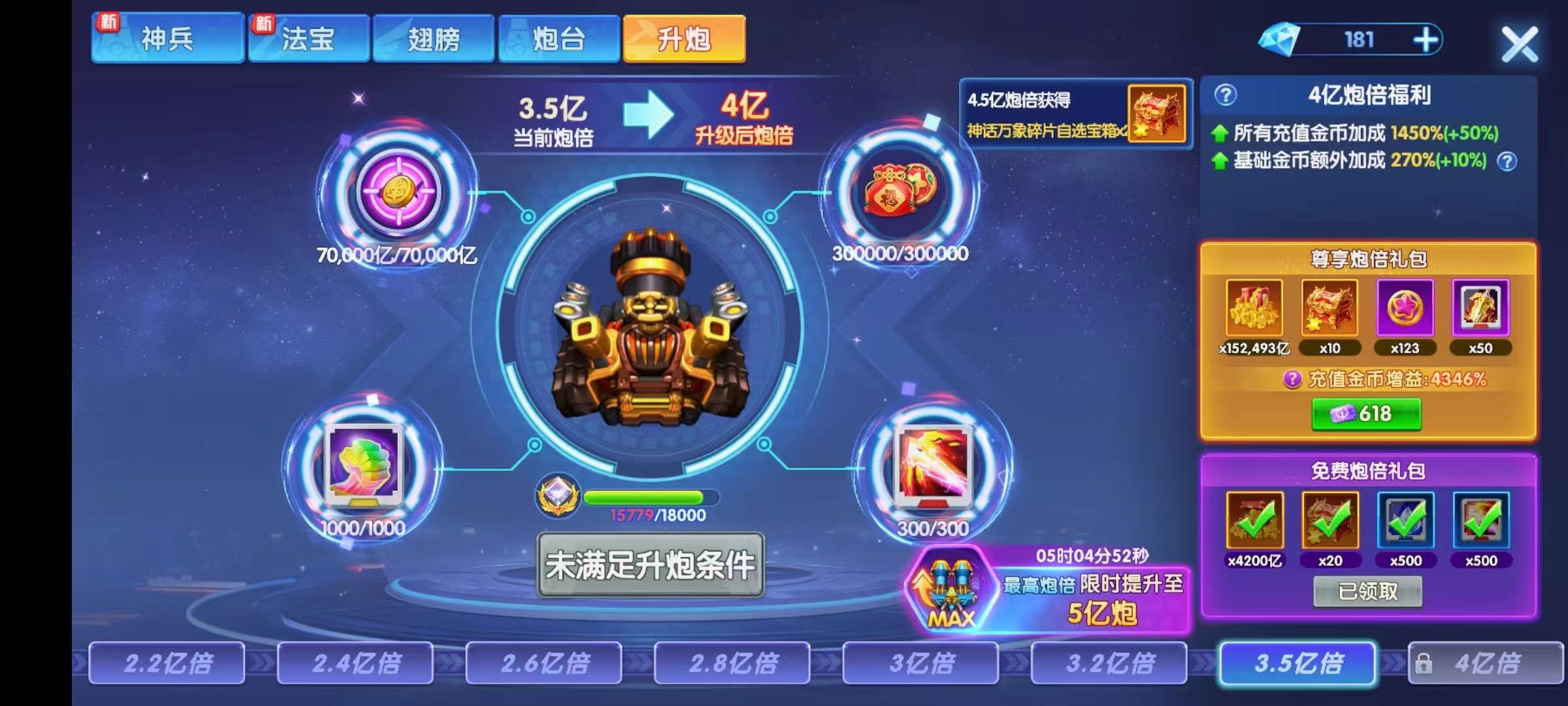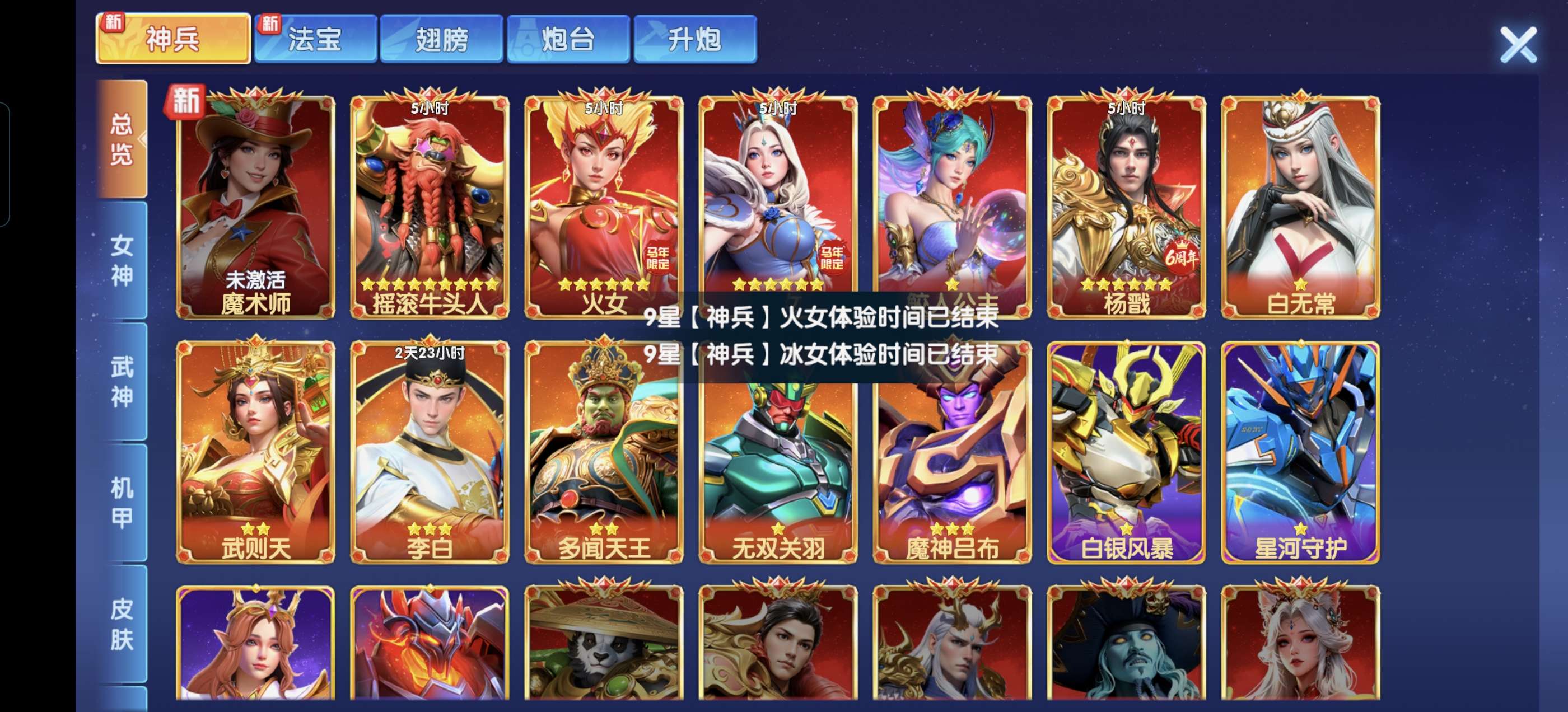 V10号,金币有1.1万万亿, 百倍模式,羁绊多,万象满,双月卡都还有好几十天,高炮,资源很多。