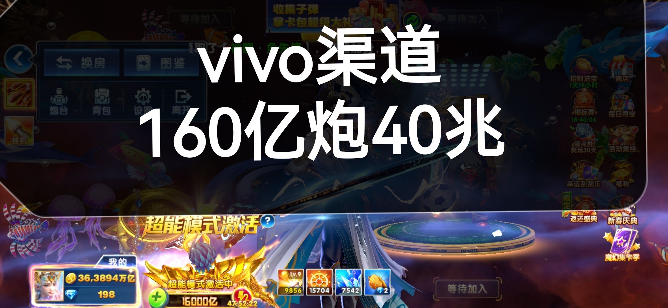 捕鱼大作战vivo版本16000亿炮40兆金币出租纯玩