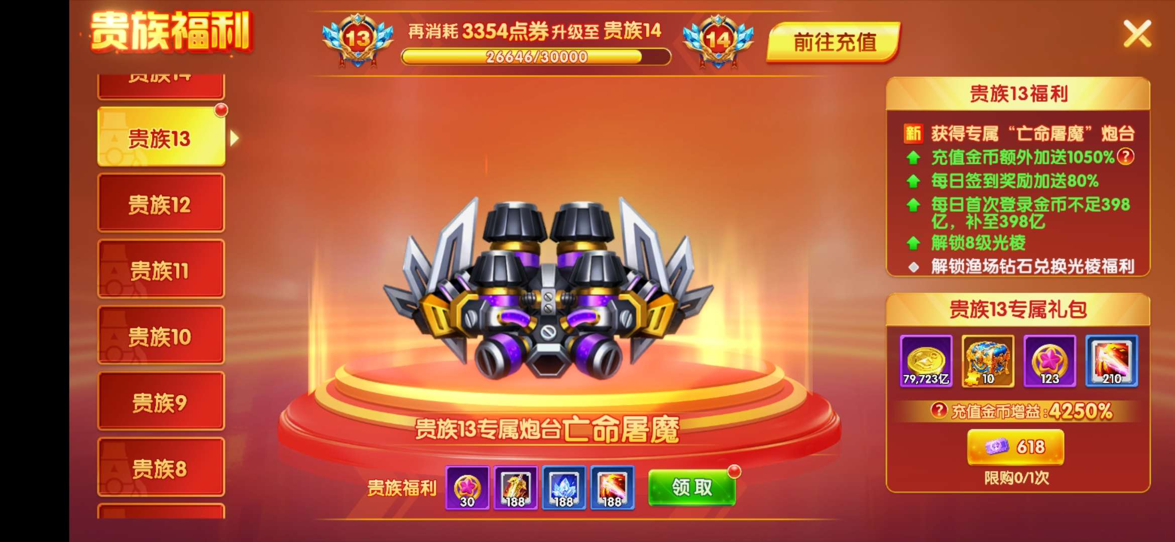 乐乐捕鱼,v7万像满,3.0炮倍,230点券,80万蛋,羁绊14解绑出最低价了,免打扰,