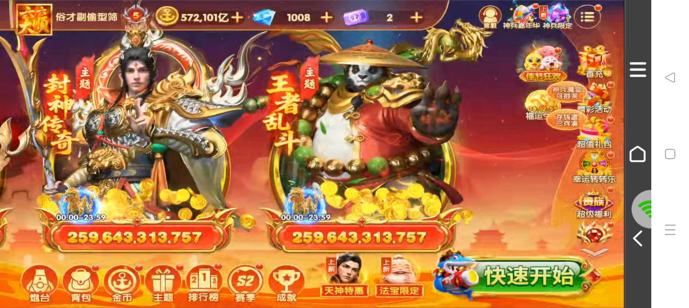 乐乐捕鱼带号v4-6.5万亿,永久安禄山3阶,嫦娥3阶,狂暴之刃已经解锁,带号出
