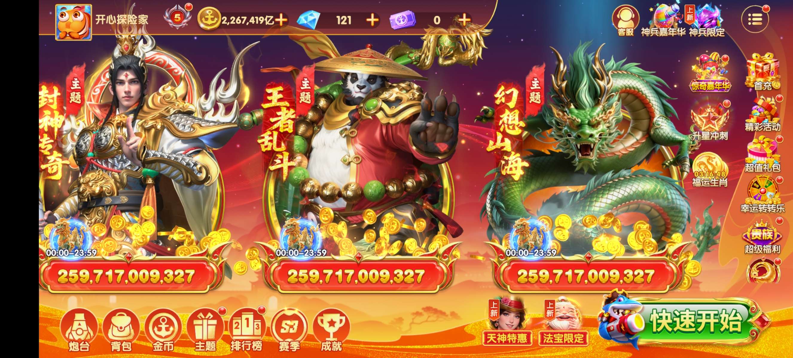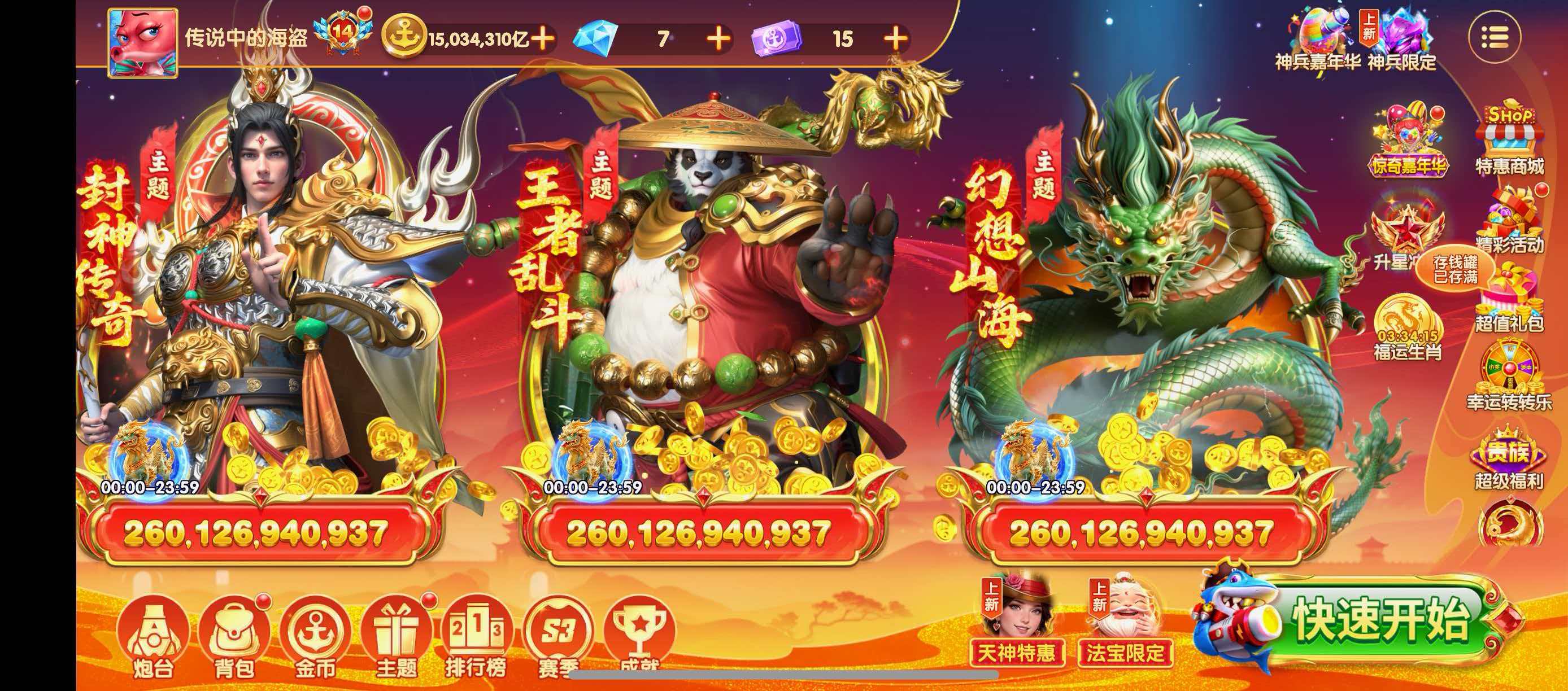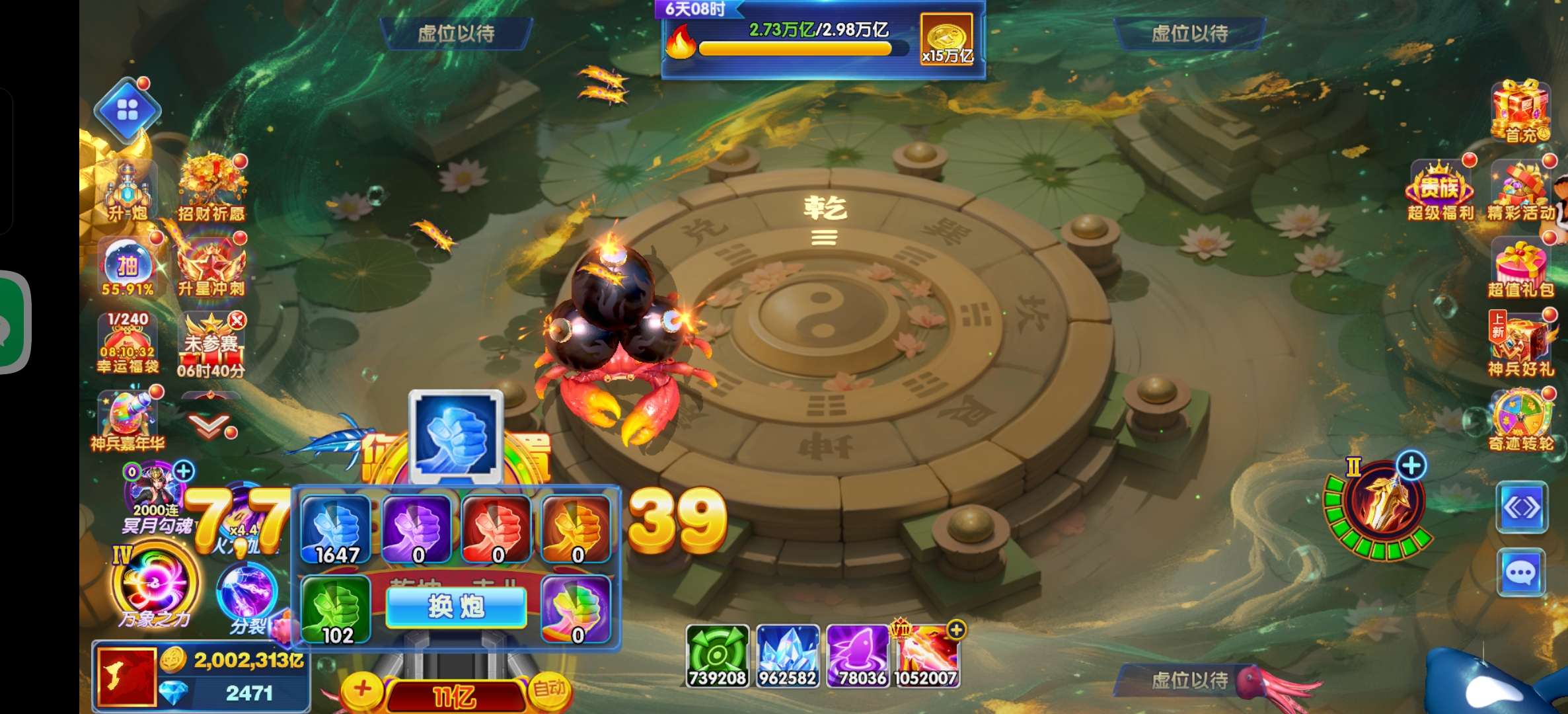 乐乐捕鱼30万亿解绑带号出v5(没开百倍威力)1.4亿炮限时3.5 有万象神兵多多材料多多