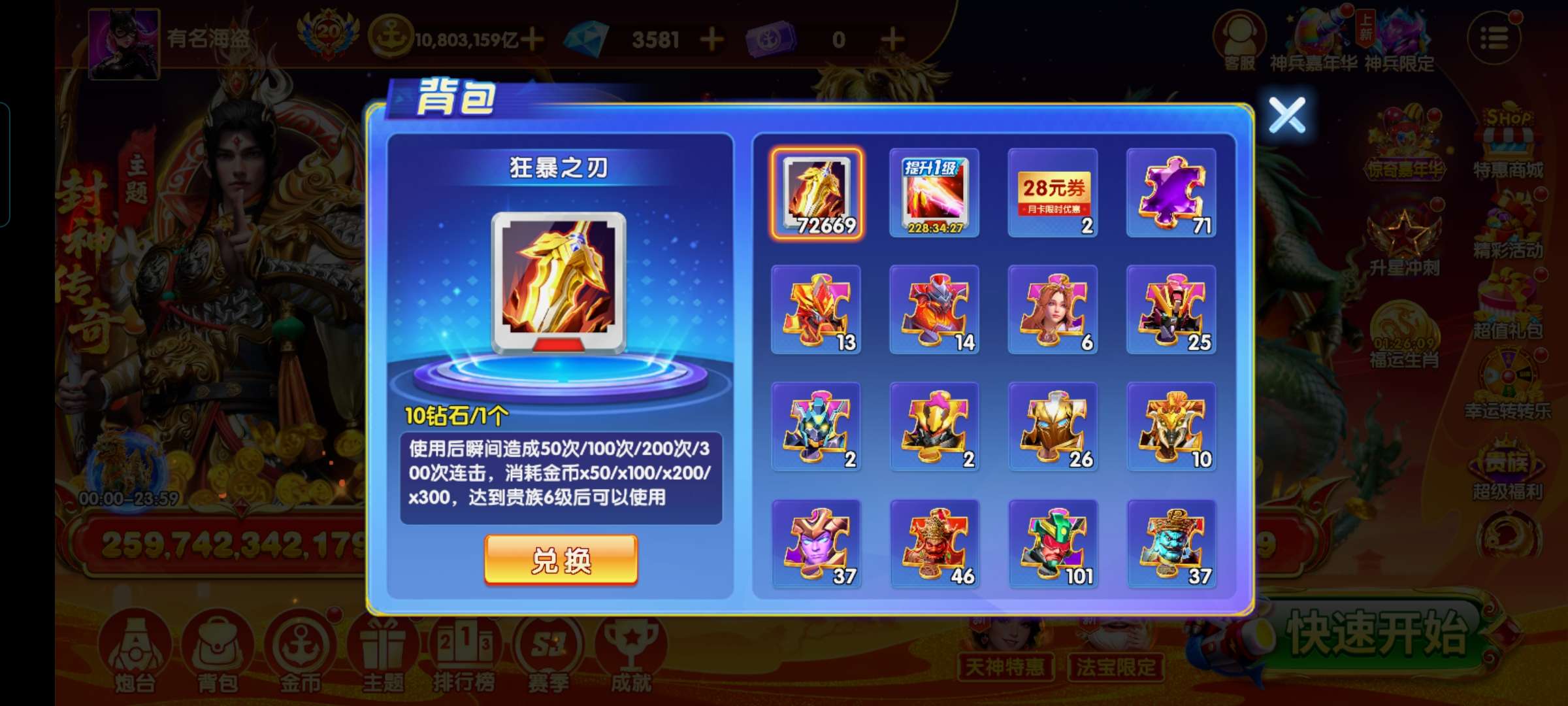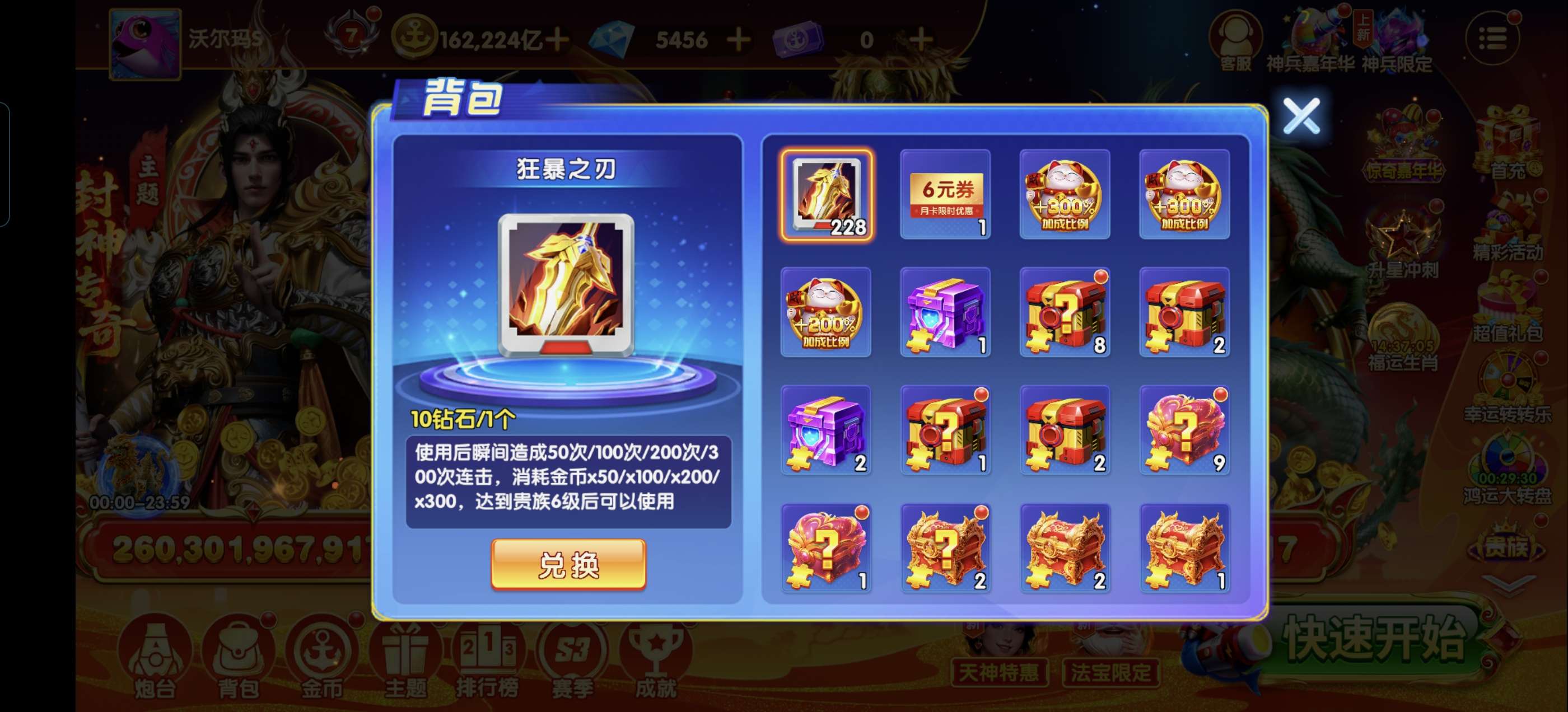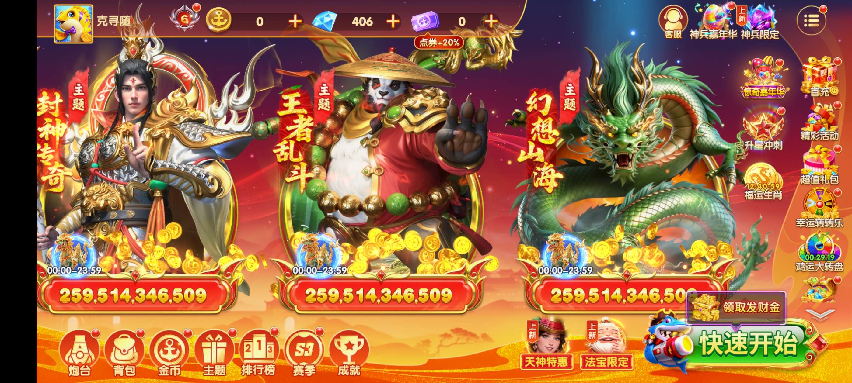 乐乐捕鱼30万亿解绑带号出v5(没开百倍威力)1.4亿炮限时3.5 有万象神兵多多材料多多