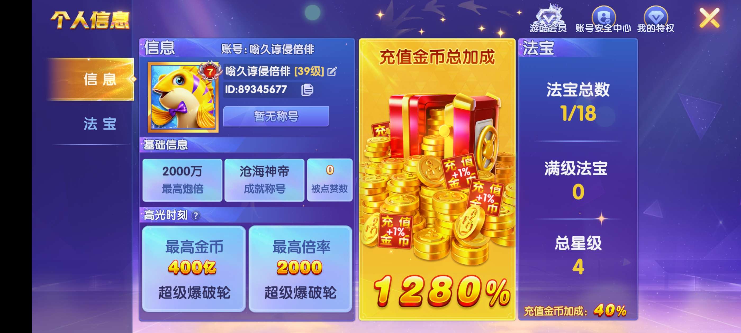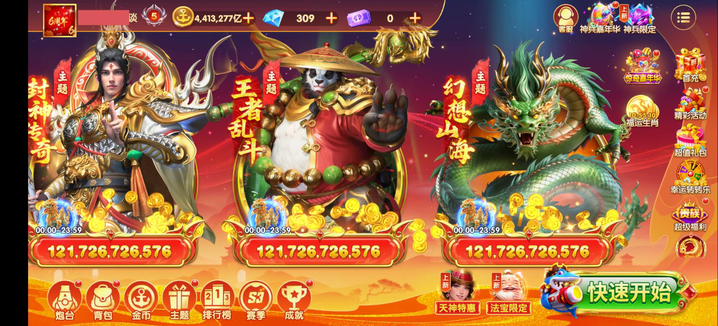 乐乐捕鱼出号v10 5满账号炮台5亿