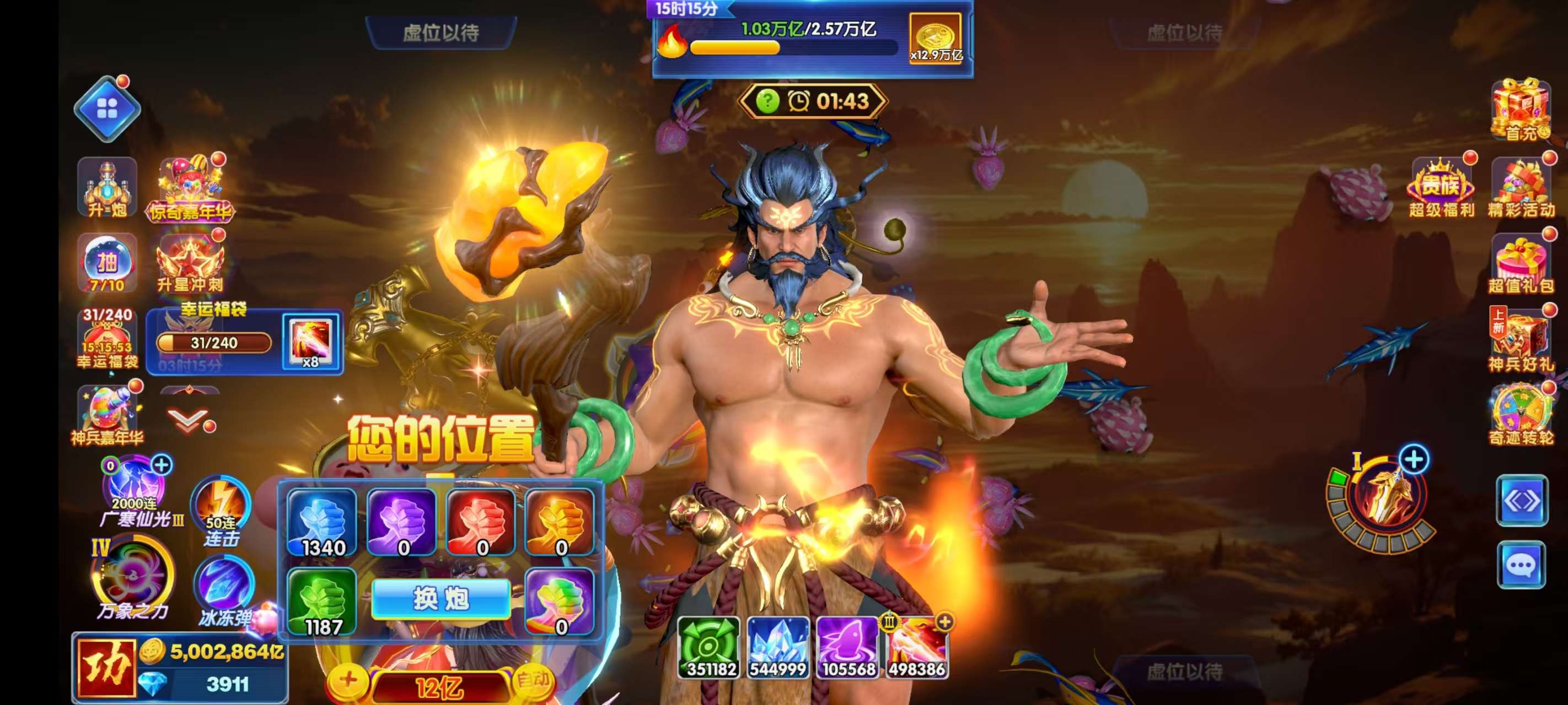 乐乐捕鱼500万亿 顶配 羁绊五满 普通模式 没有开威力和百倍。娱乐 12亿炮
