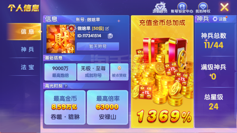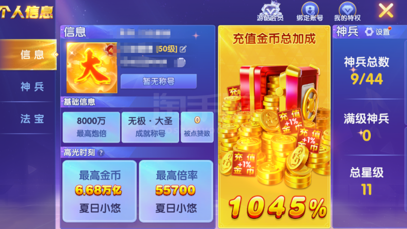 乐乐捕鱼V11文字号带55万亿分带蛋60多万,养老号解绑出