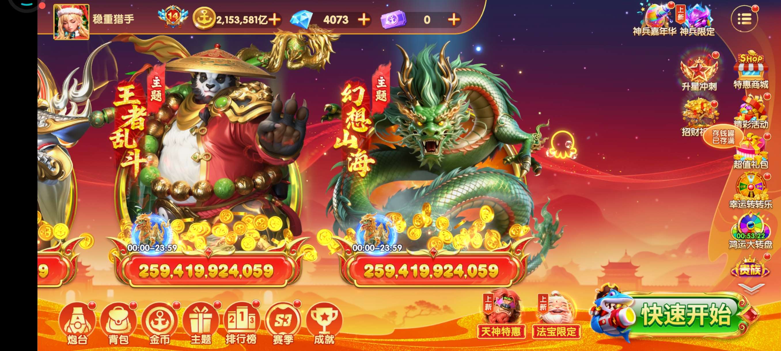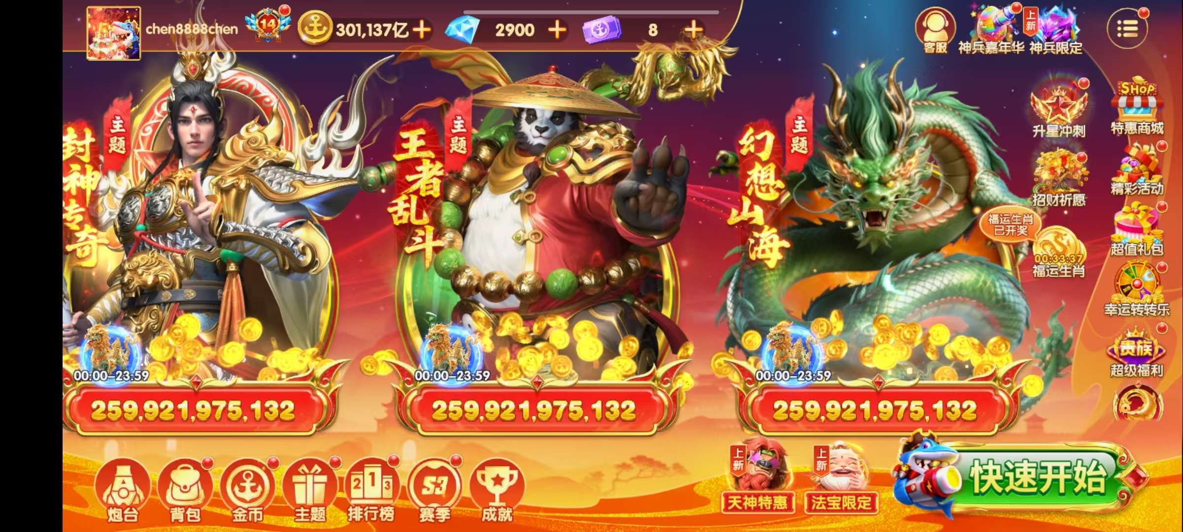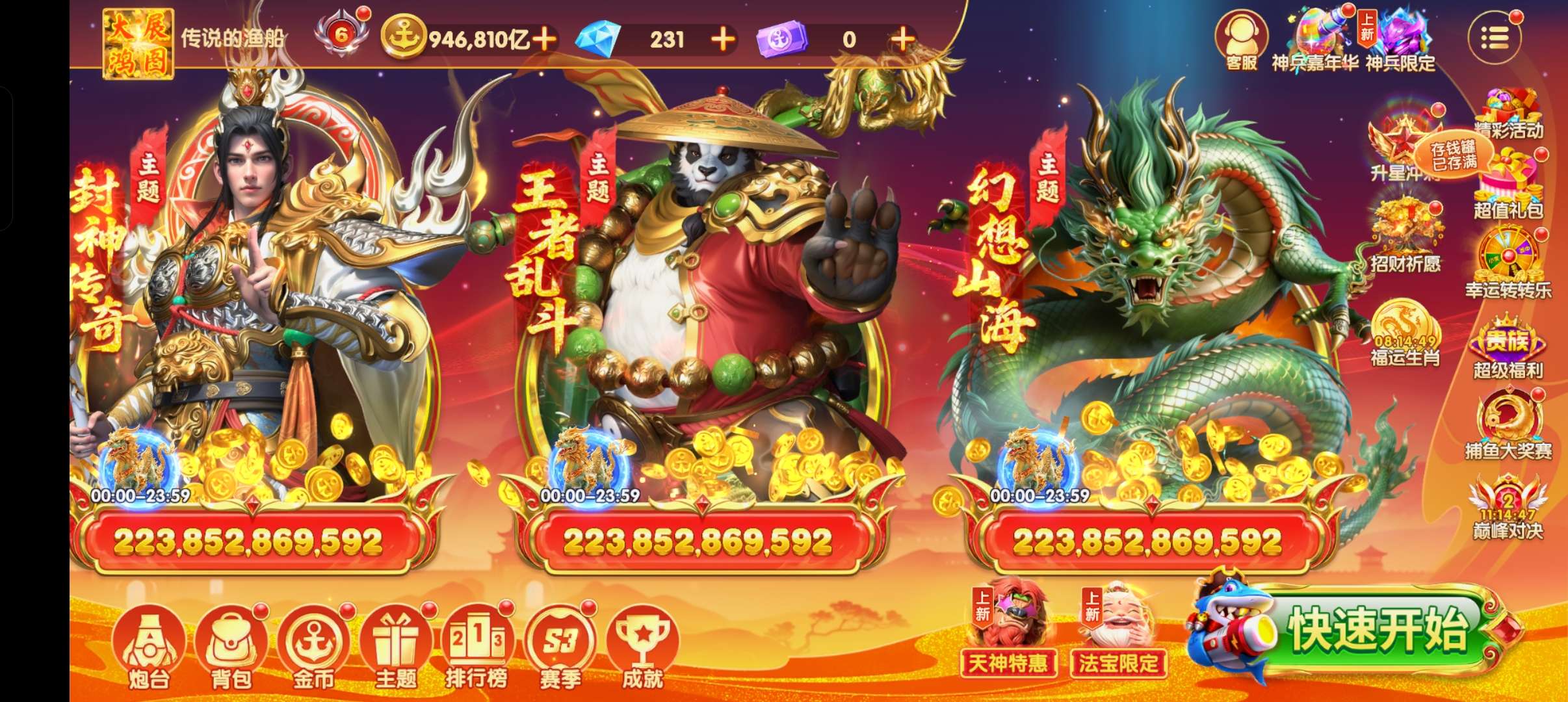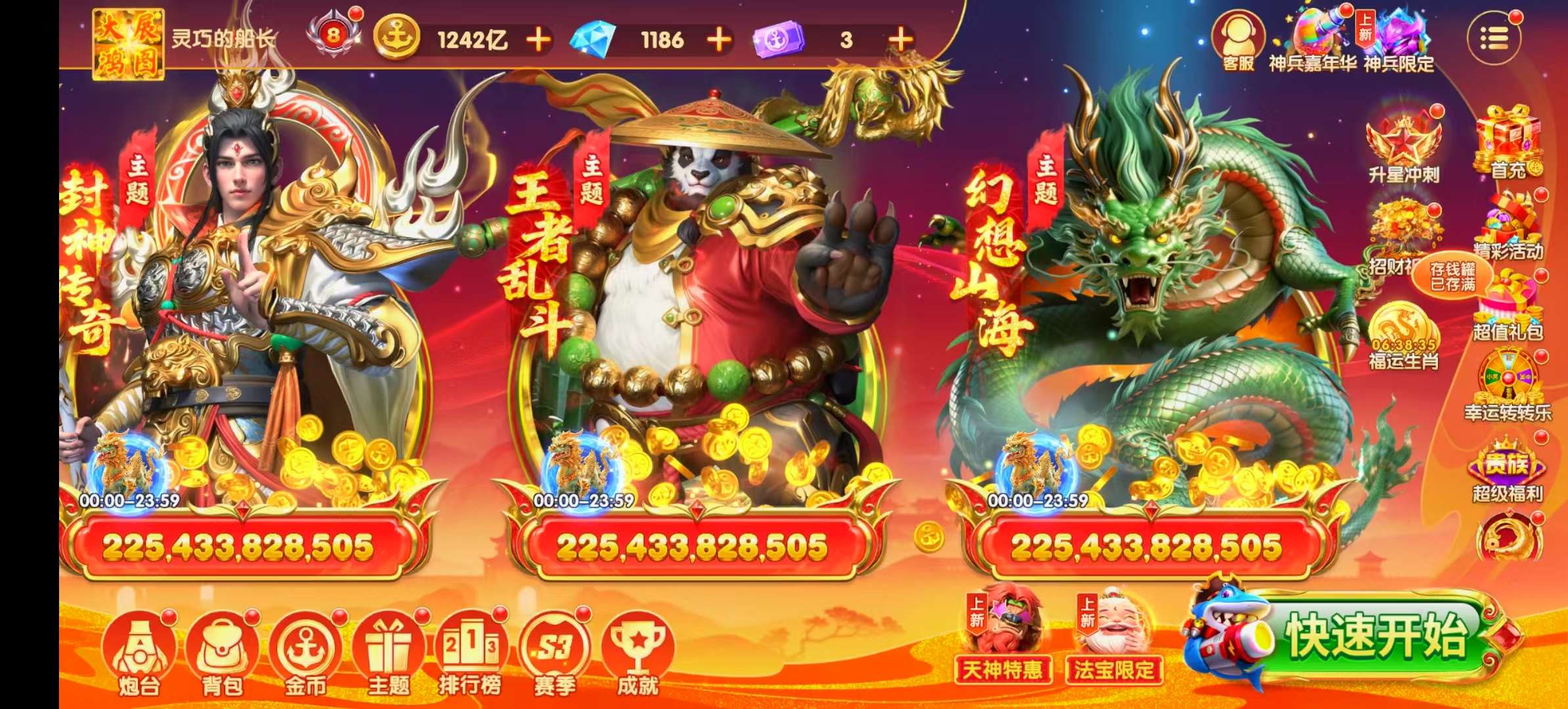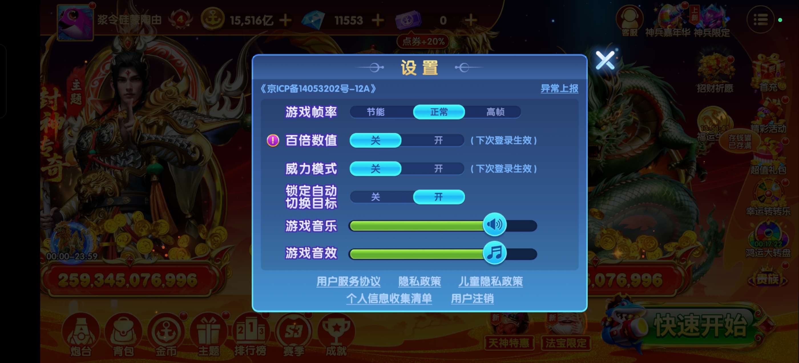 乐乐捕鱼高V号 资源多 金币510万亿神兵齐全 炮台高 羁绊全 适合娱乐高炮账号安全 解绑出