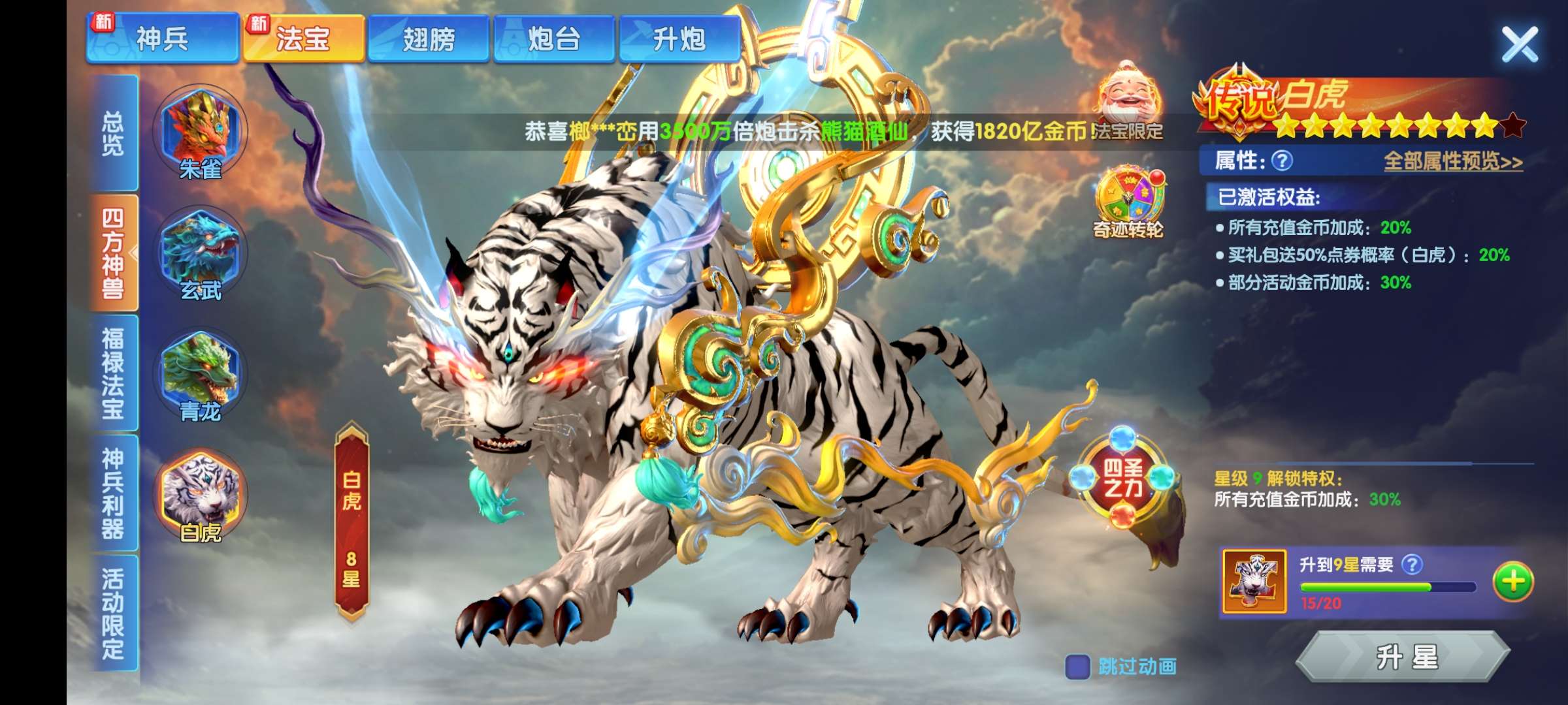 官方文字号 v4 1352加成 1.1亿炮 带法宝和神兵 便宜出