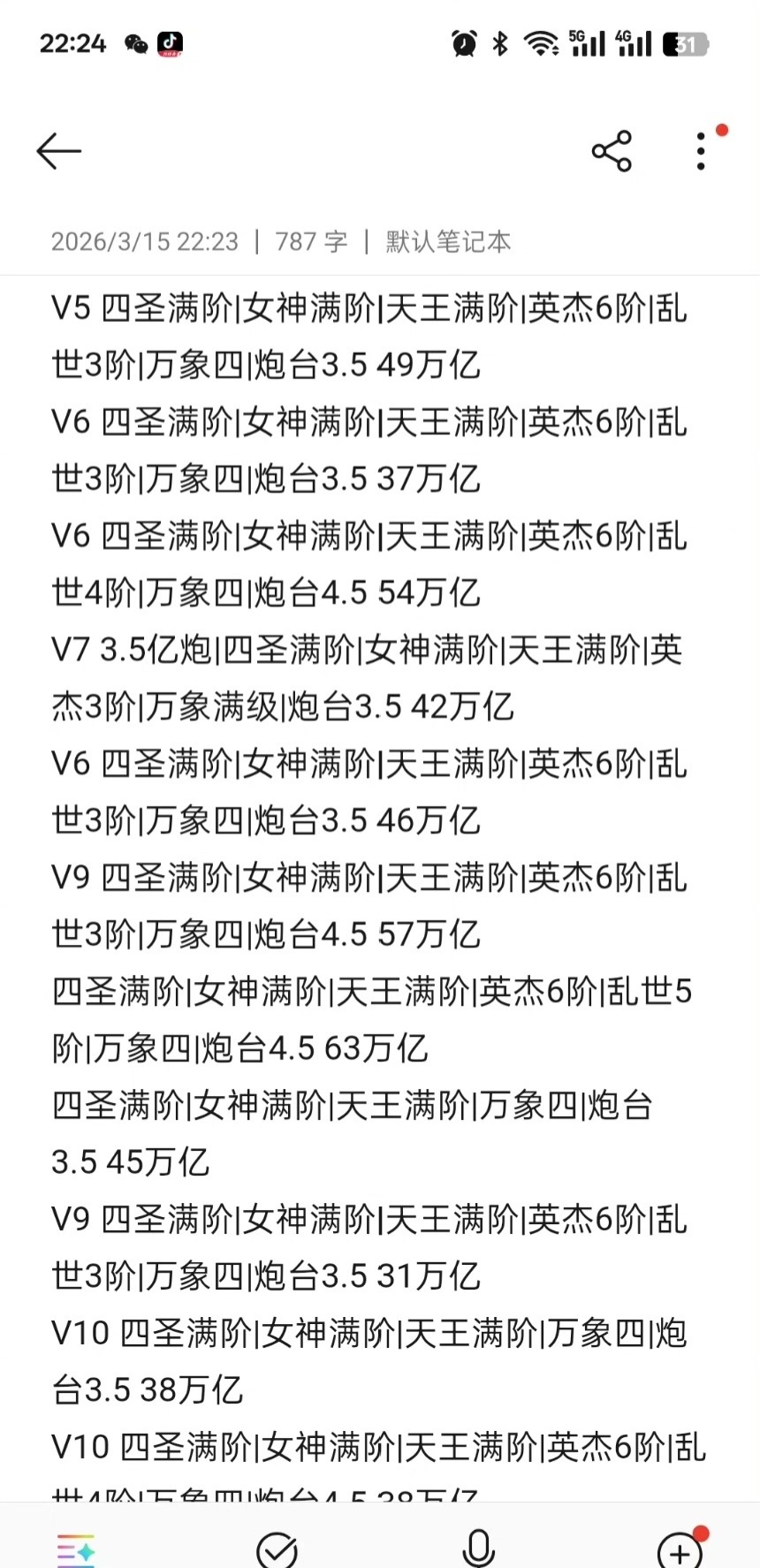 顶级V七,差46块V八,羁绊99663,四圣差一点