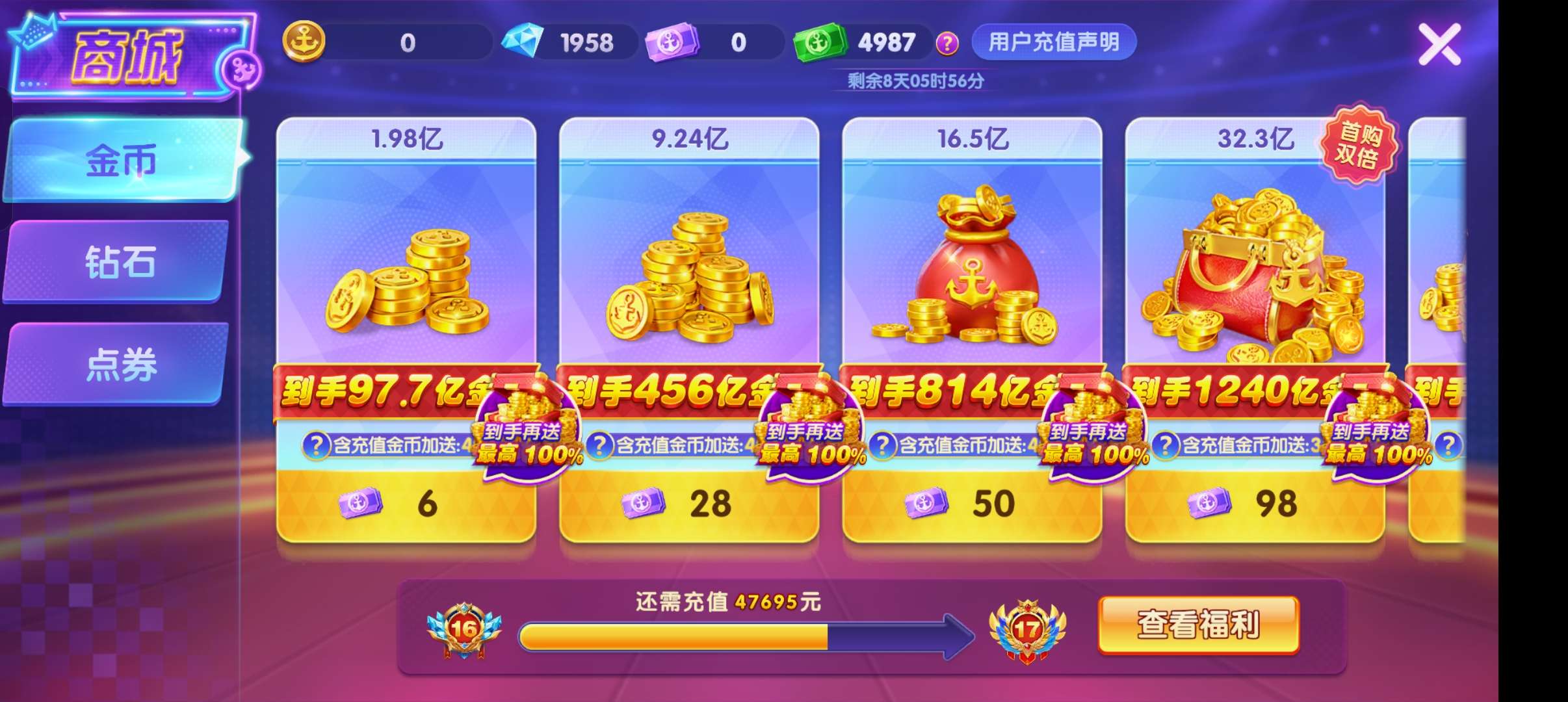 乐乐捕鱼 v7解绑账号带13万亿金币,基础炮台9000,双100%充值都在
