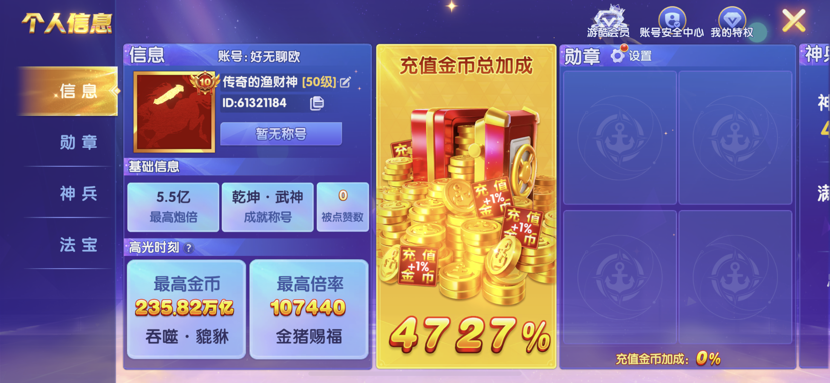 乐乐捕鱼v4带号8万亿金币,永久梦幻甜心3阶,带号出