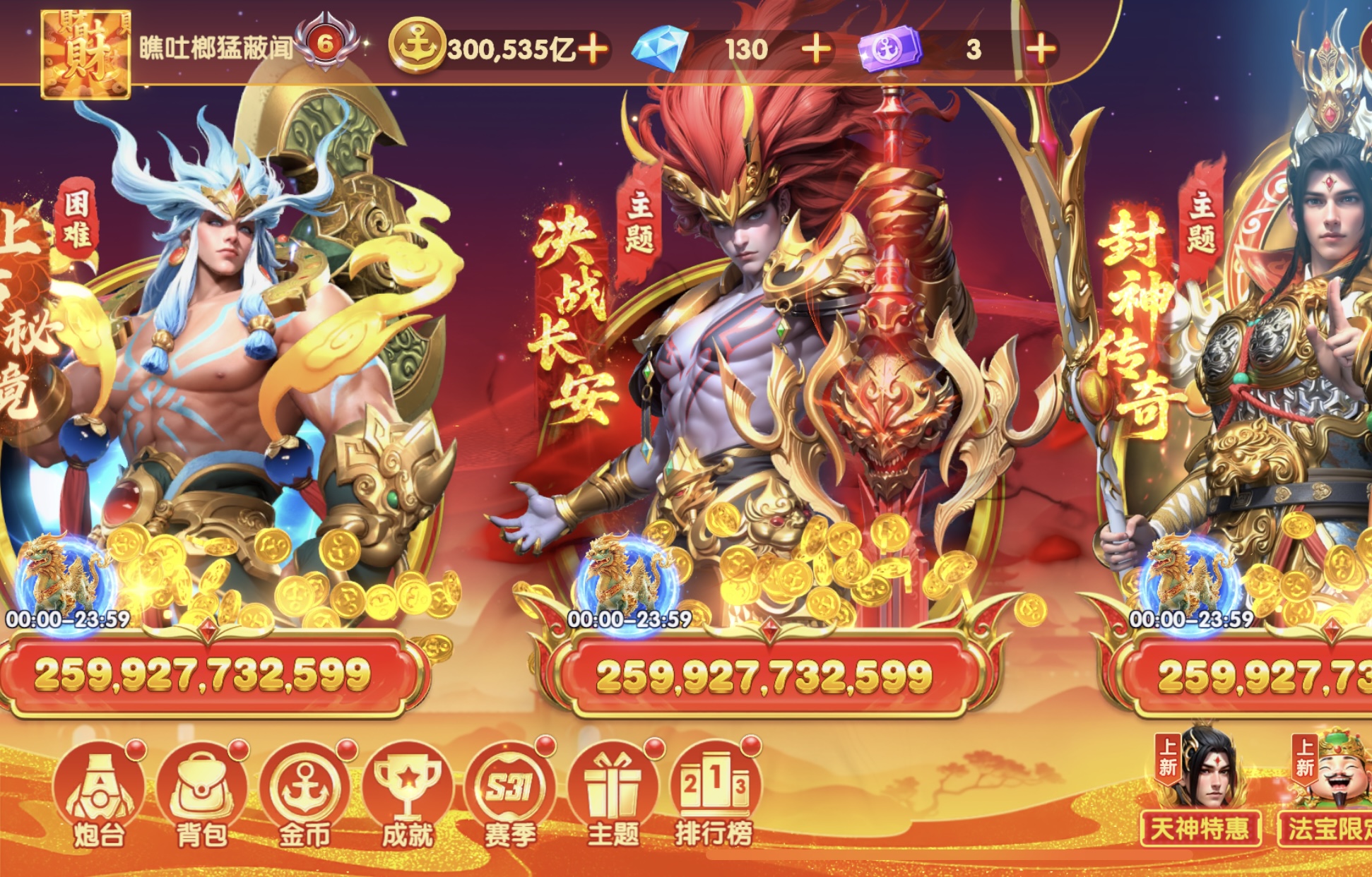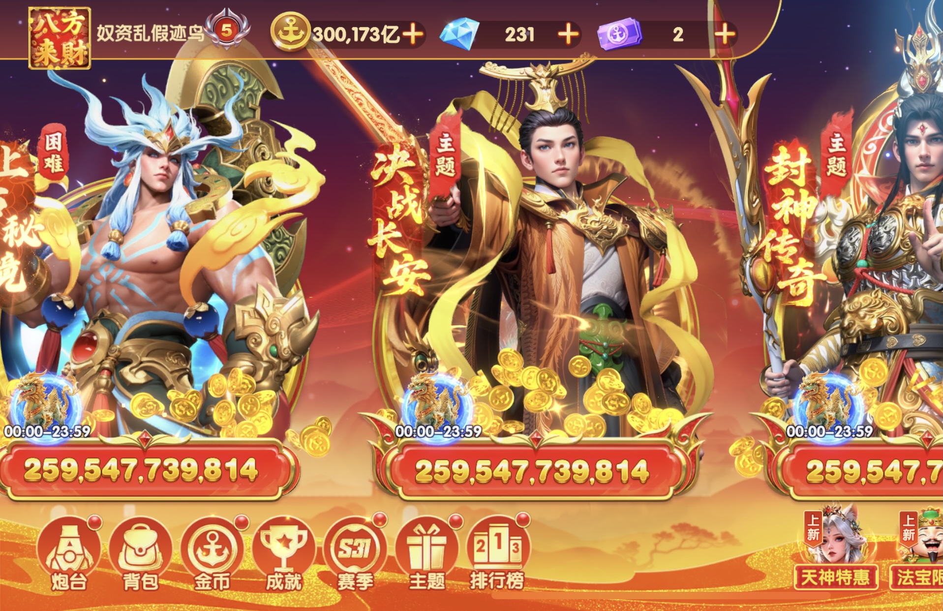 V7,50万亿,3亿炮四圣满女神满,天王6635三国334