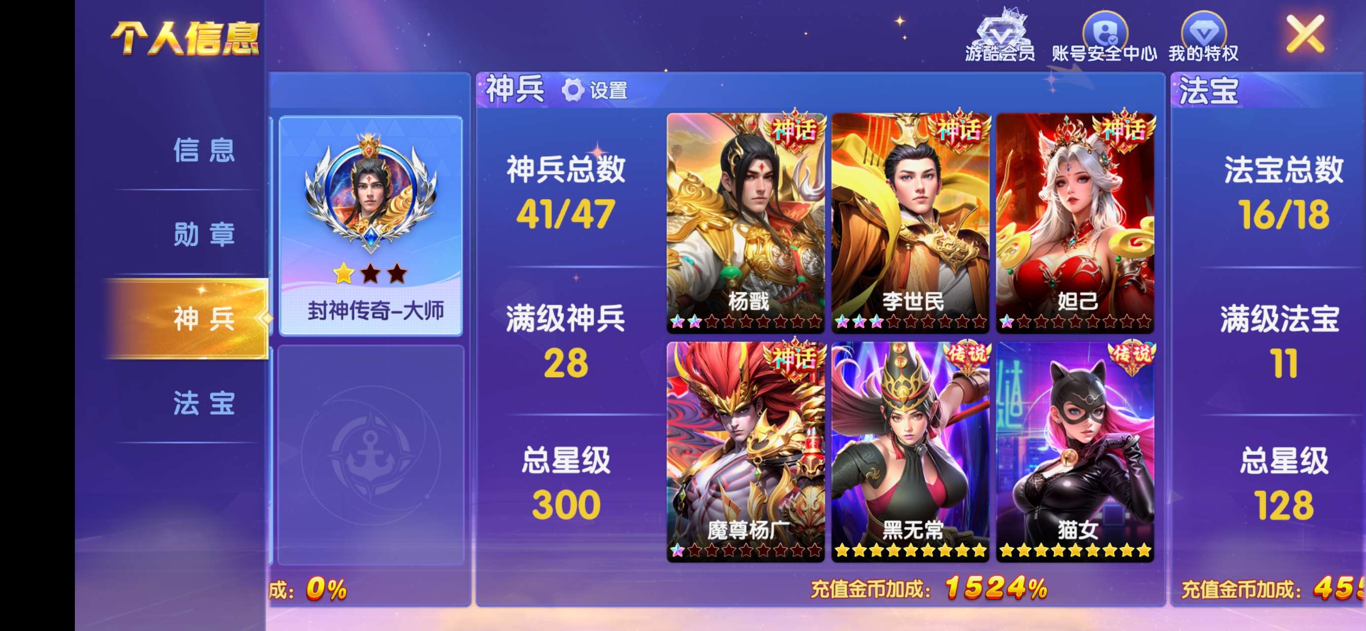 V8看图,至尊月卡,满级万象,神兵几乎都是满级的!