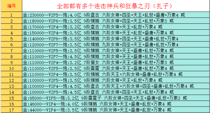 官方文字高爆号,187万亿正常版本。各种9星神兵,详情看图。看清楚概不还价!随时换绑带号出!