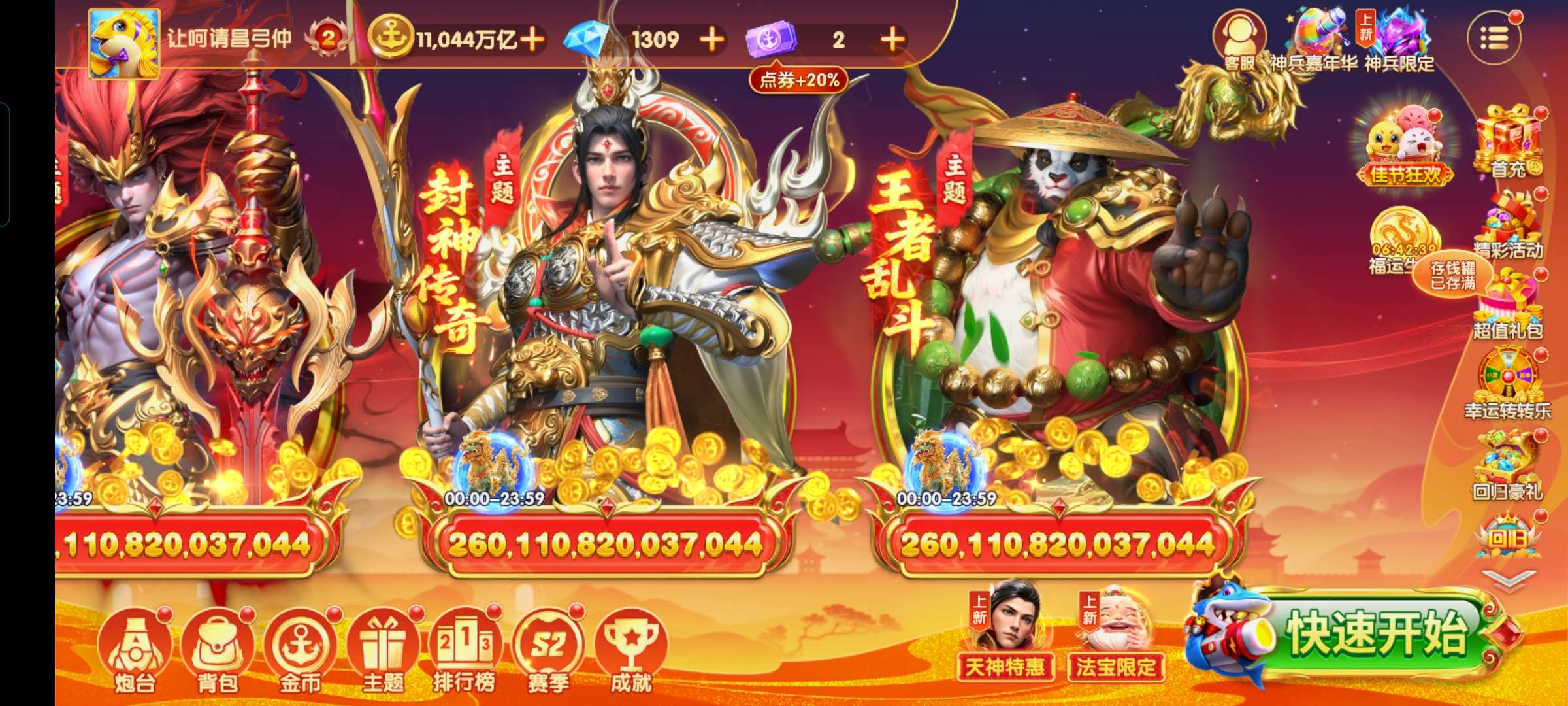 乐乐捕鱼官方账号娱乐25万亿 万象4 五套翻倍羁绊 0.025比 基础炮3.2 临时炮4.5