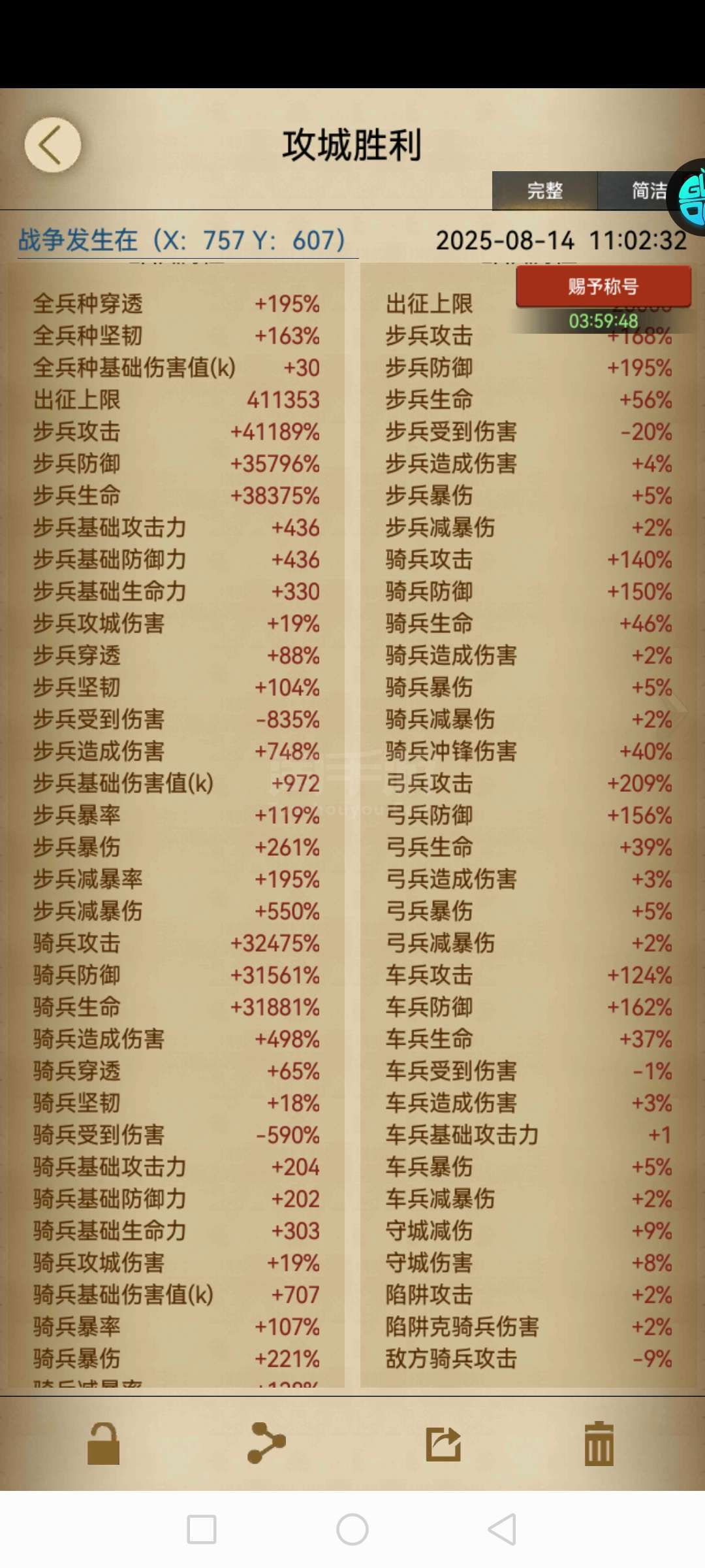 COK列王的纷争【安卓小7手游】2202区1万骑属性