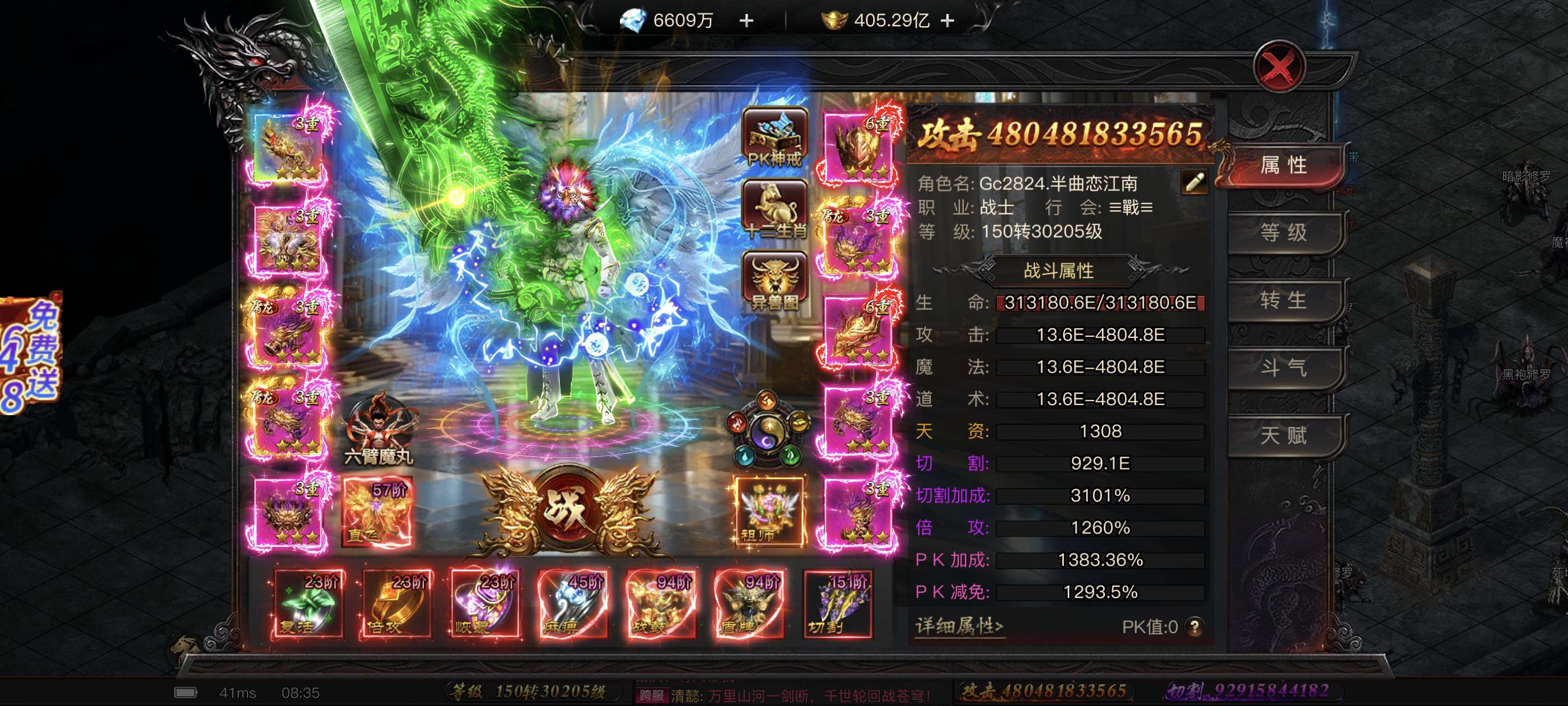 4800亿战力大战士全身粉装,精氪7w多,公会会长卧龙神级
