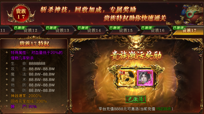 4400亿榜一道士新服100多天特权满4屠龙累充3个低价出(已更新)