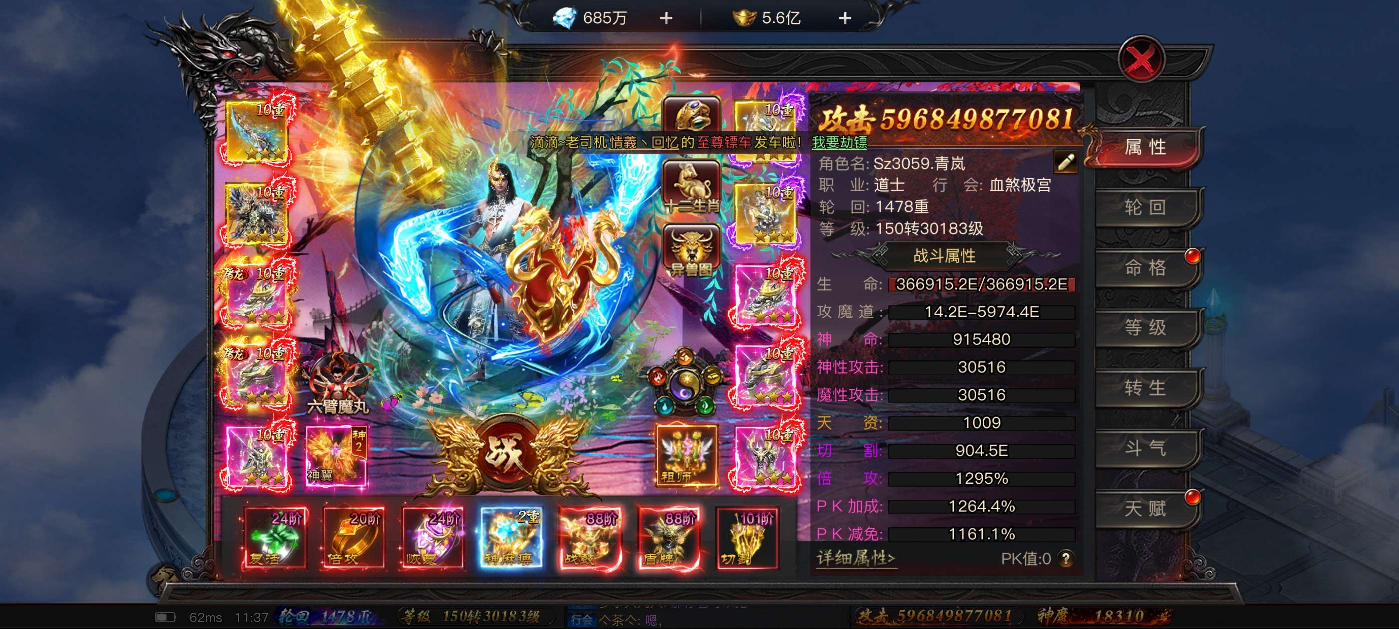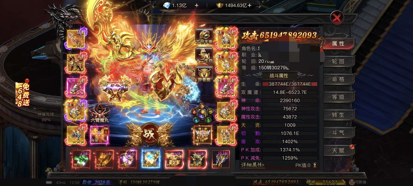 1.3万亿攻击1万真伤!理财满!十倍满!武神旗!神兵满!异兽满!冥王满!红卡10万榜3官职7成神