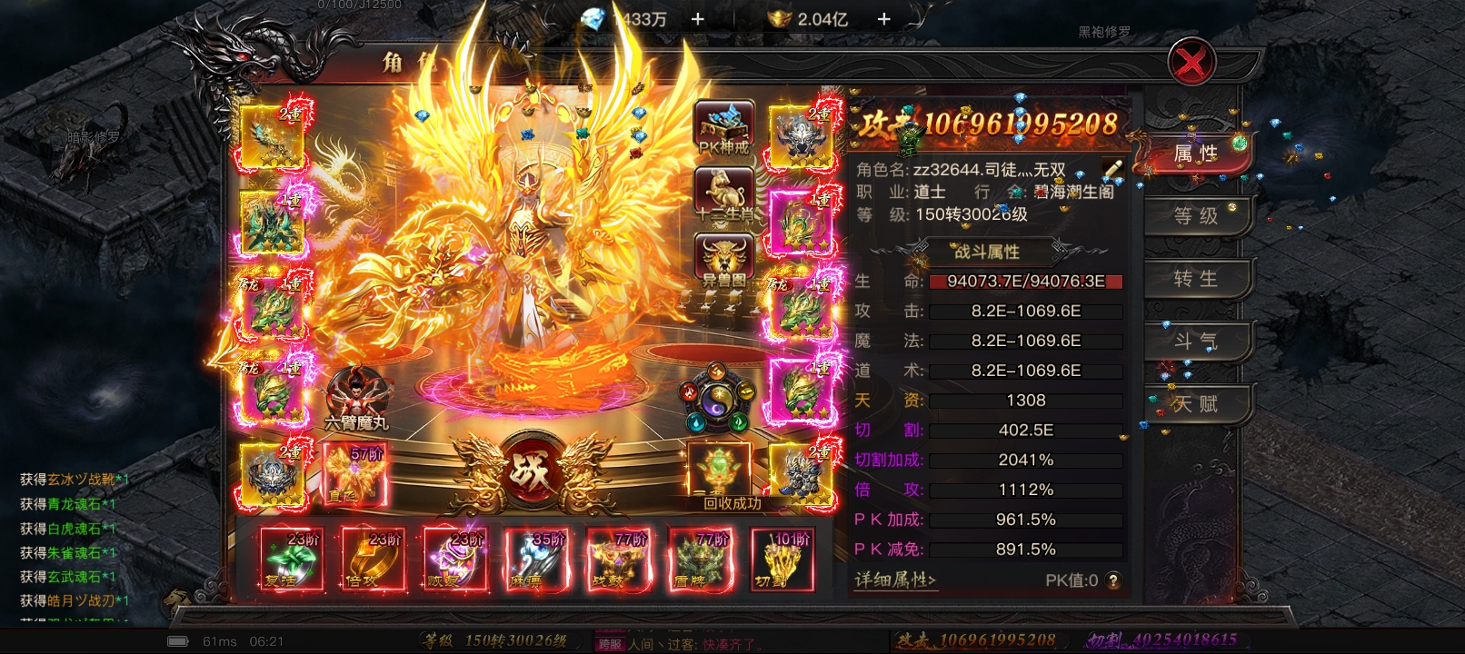 1.3万亿攻击1万真伤!理财满!十倍满!武神旗!神兵满!异兽满!冥王满!红卡10万榜3官职7成神