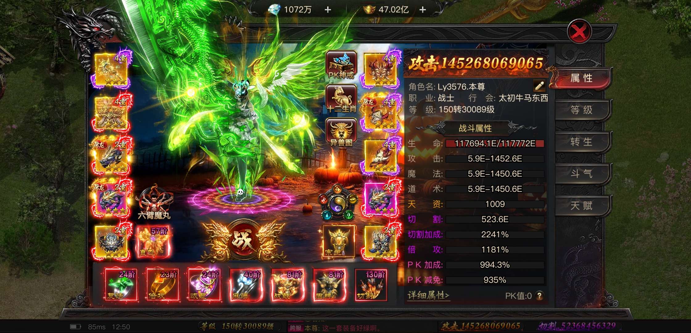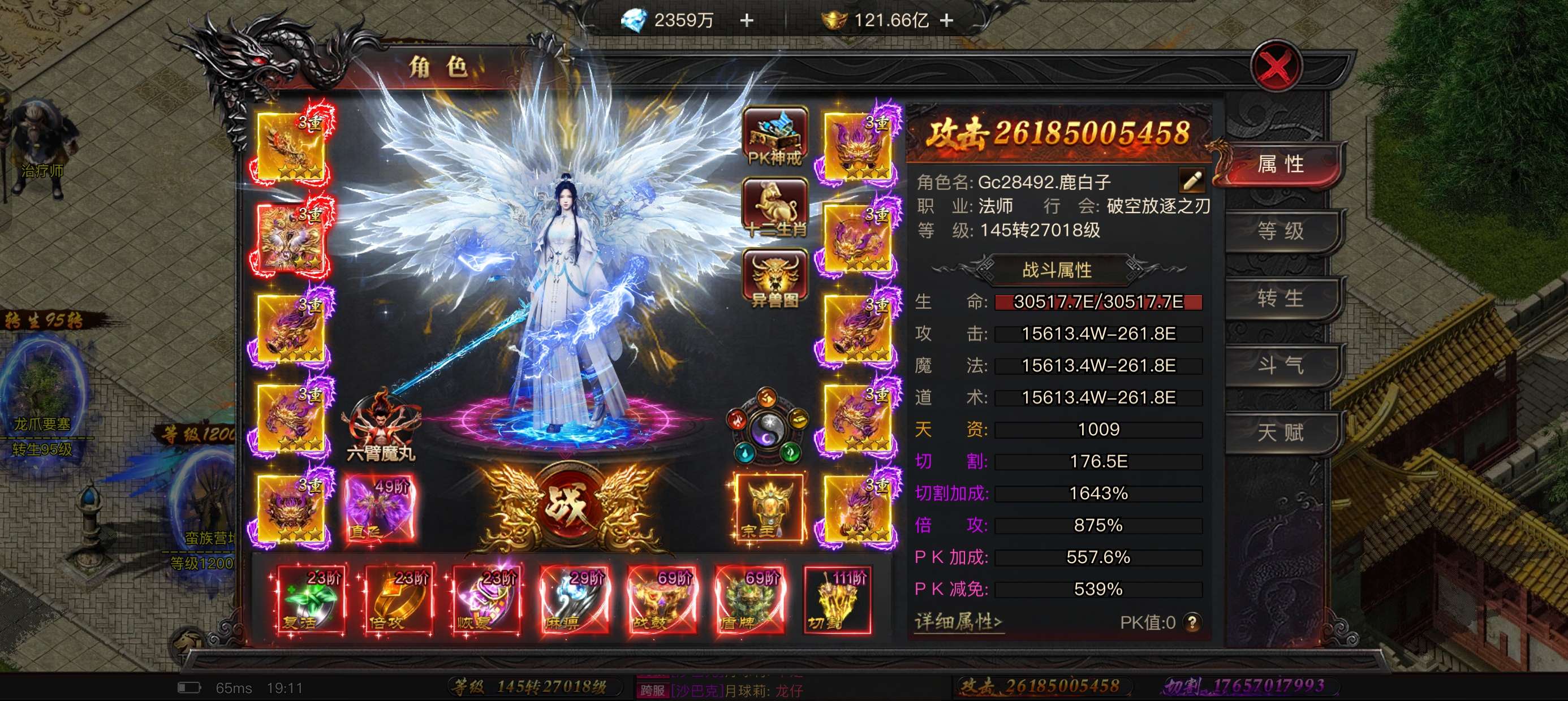 榜一首战190天15500亿屠龙套大法师,充值13万,全满,渡劫满,33时装,998轮回特权!
