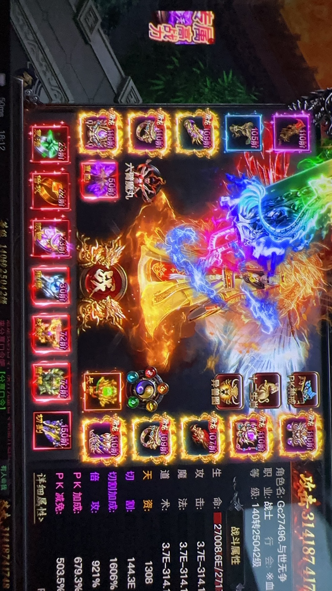 屠龙,裁决,隐身术,变羊术,帝皇称号,祖师腰牌满,修真仙尊满,区一跨二3500万。