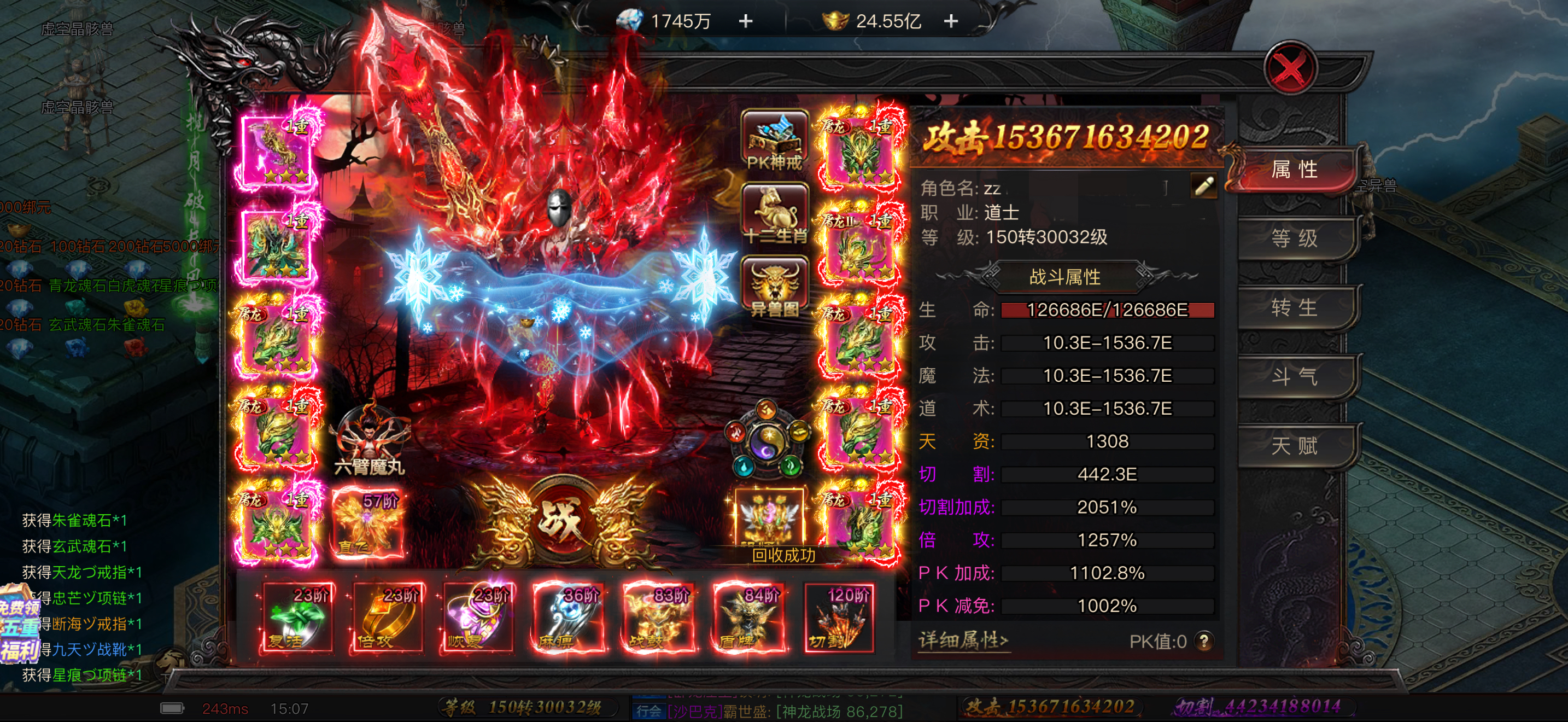 屠龙兵甲,1星敖丙,7星神戒,中秋套,充值3.7个
