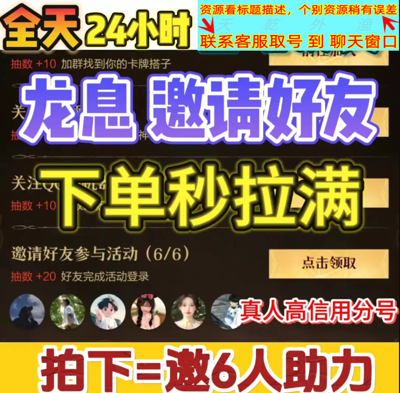 预抽卡拍1件邀请6位满