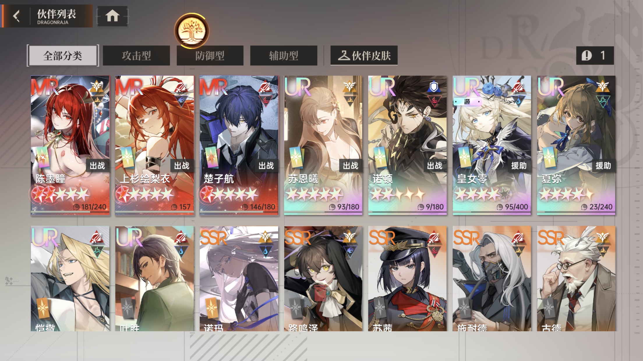大部分的角色都有只有少数ur没有,练度都还可以还可以往上面提战力,只是没时间玩的可以小刀抽奖爆率高