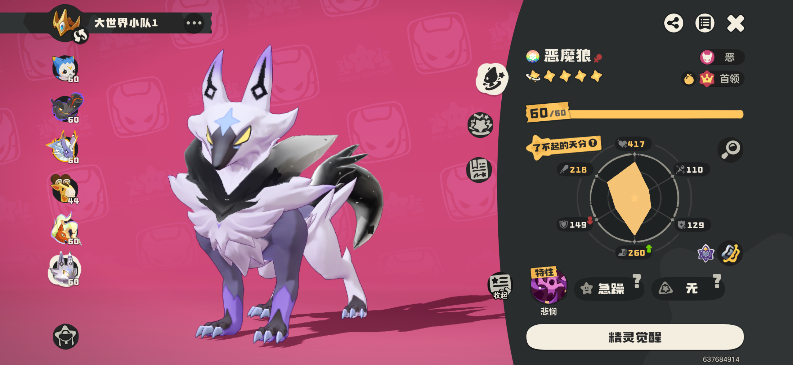 顶级天赋异色炫彩恶魔狼