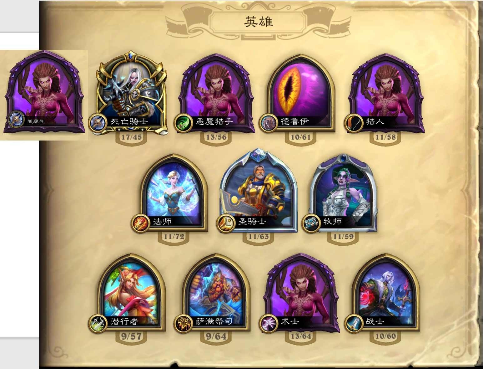 凯瑞甘、克苏恩、弗丁、月夜战神、阿尔萨斯等动皮,标准91%收藏进度,3795金币,5661粉尘