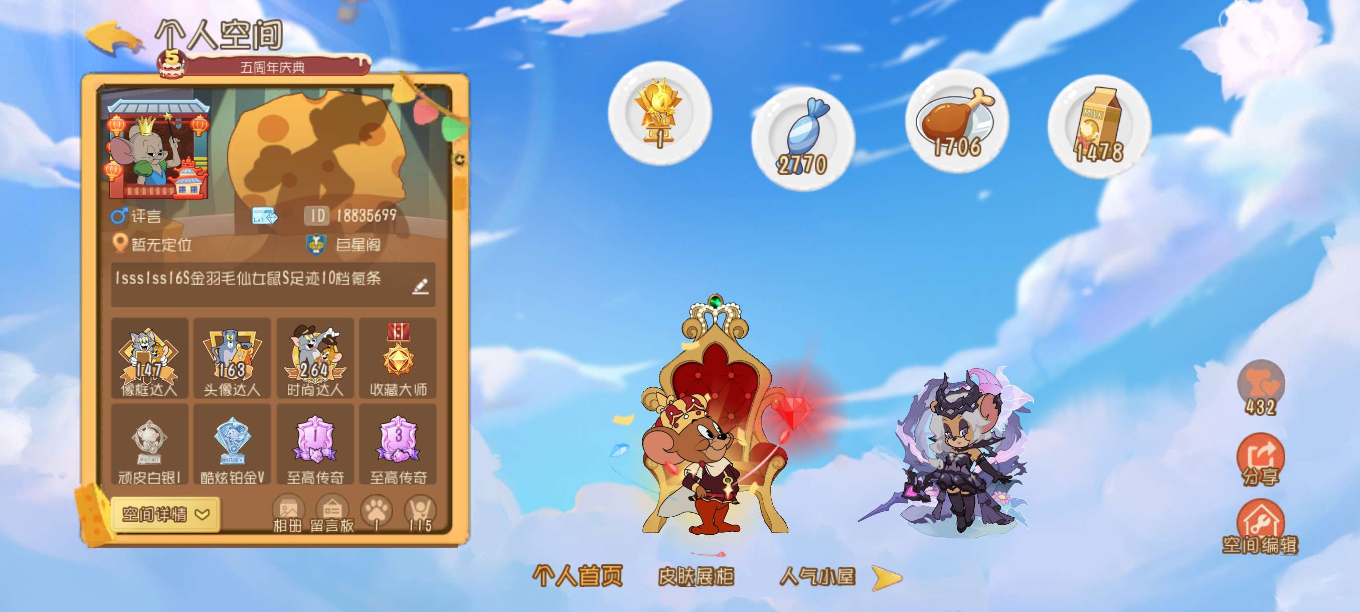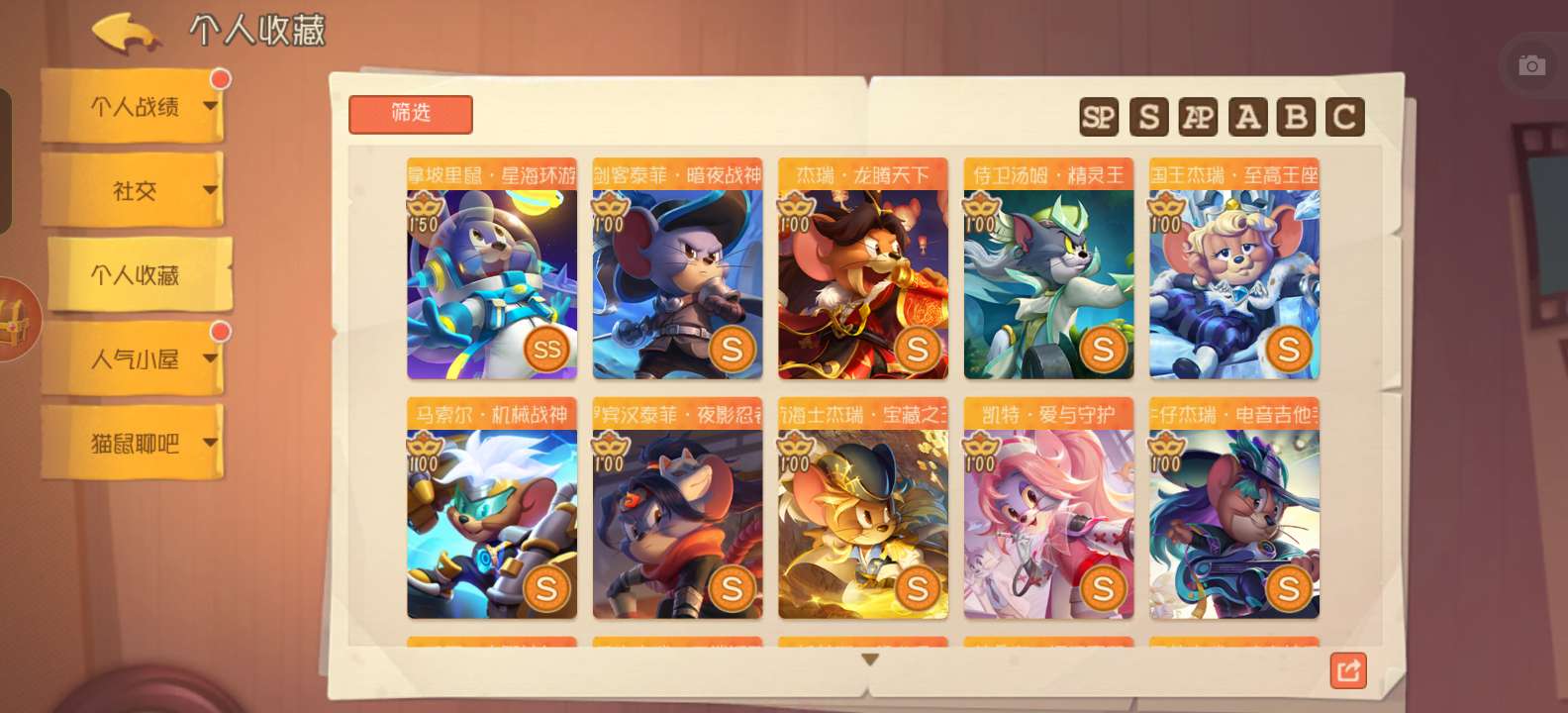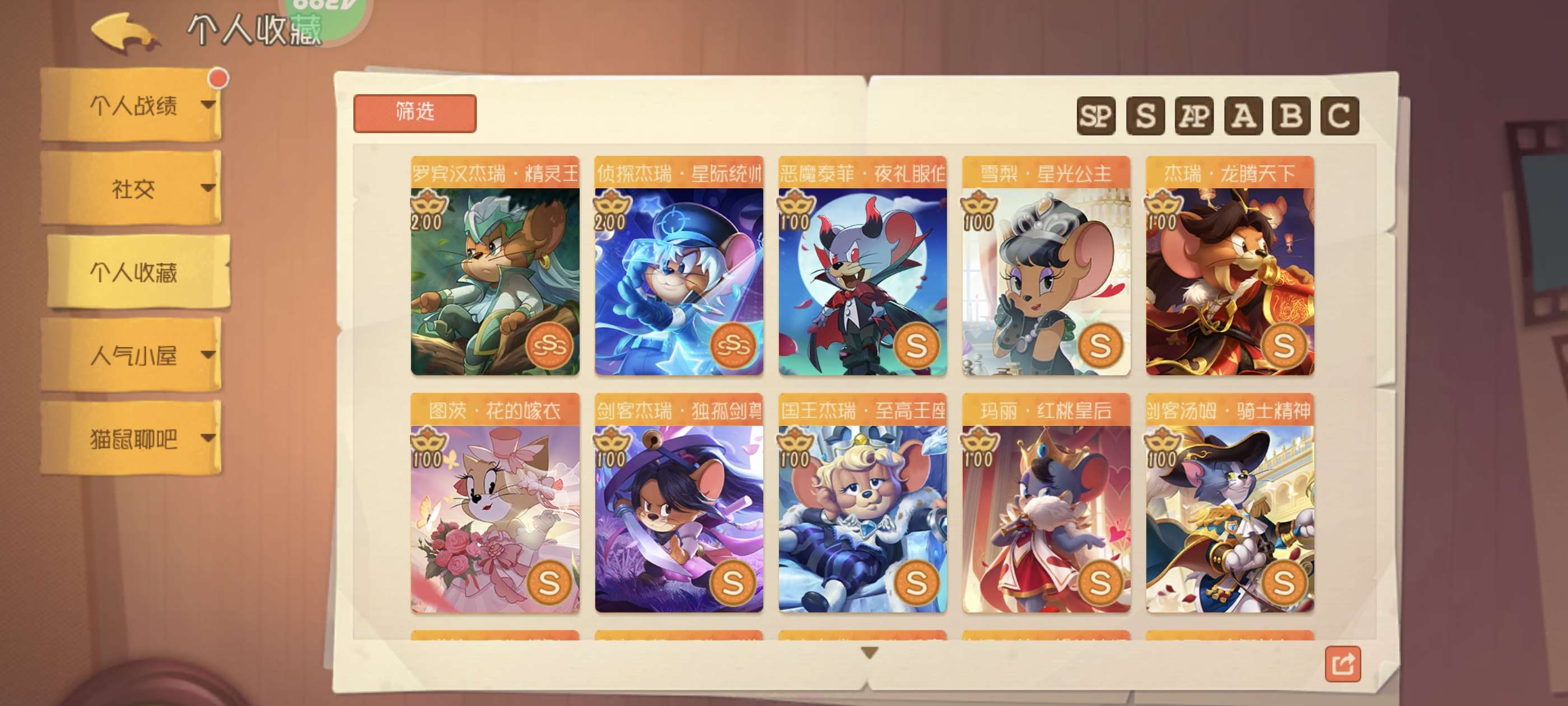 2sssp4sp28sss6ss86S氪金7万全角色5个S染色皮S机器鼠S火箭2个S足迹大表哥魔术师