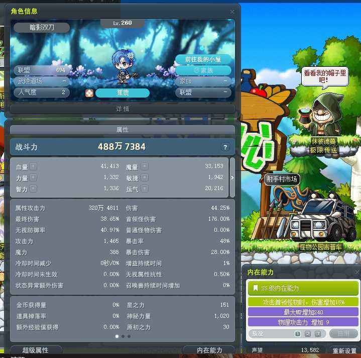 按热门筛选:神射手|按职业分类:冒险家弓箭手|按转职分类:神射手|主号神射262级 黑色天堂boss