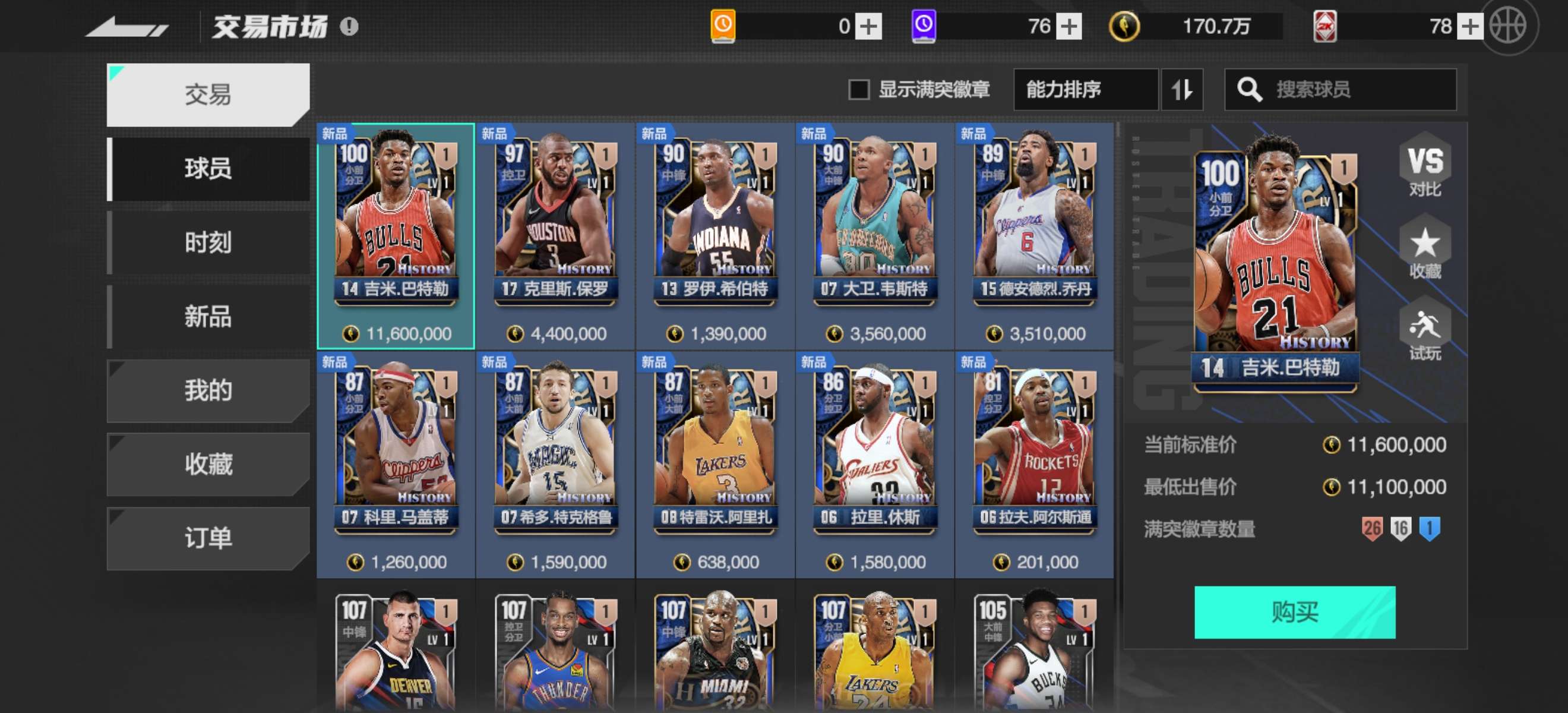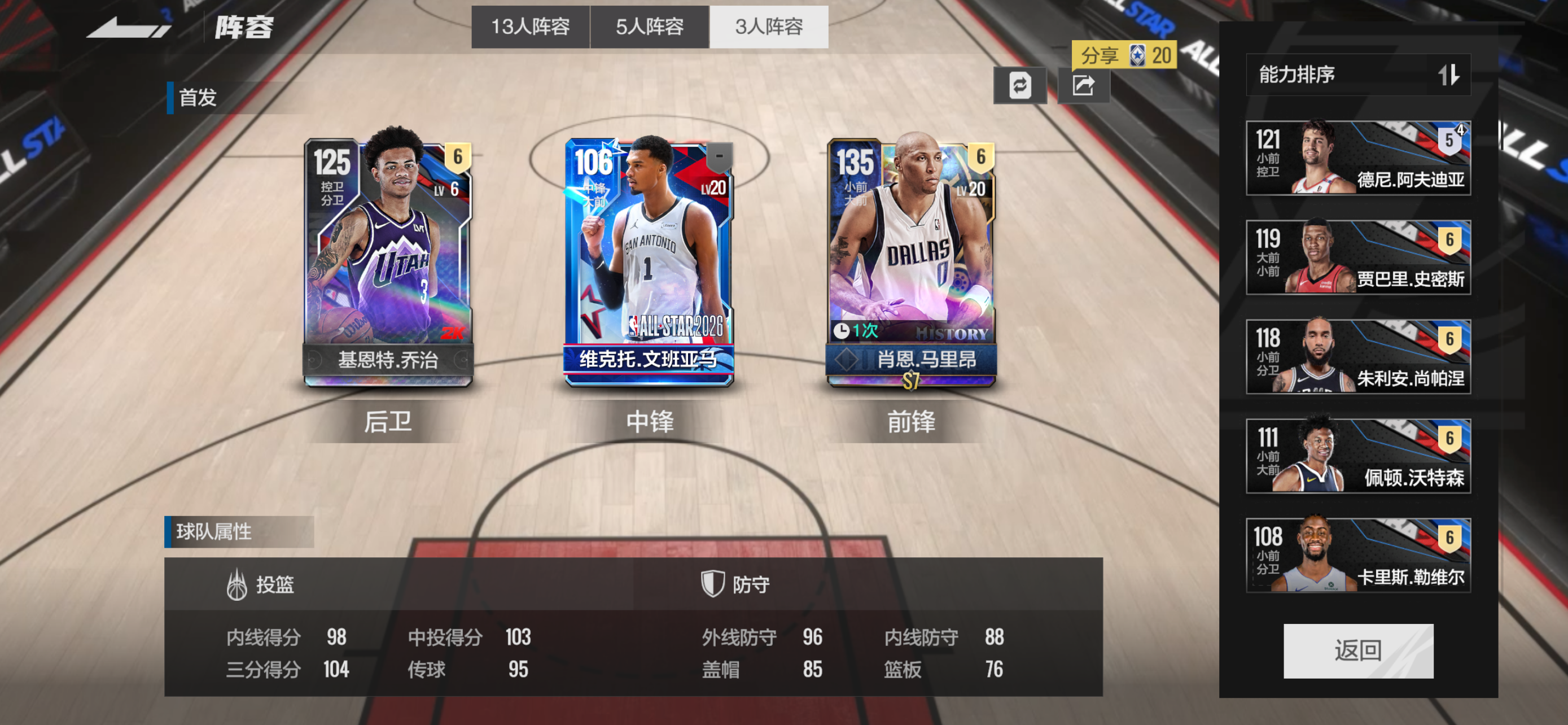 美职篮全明星4200w潜力阵容,可二次带一套衣服