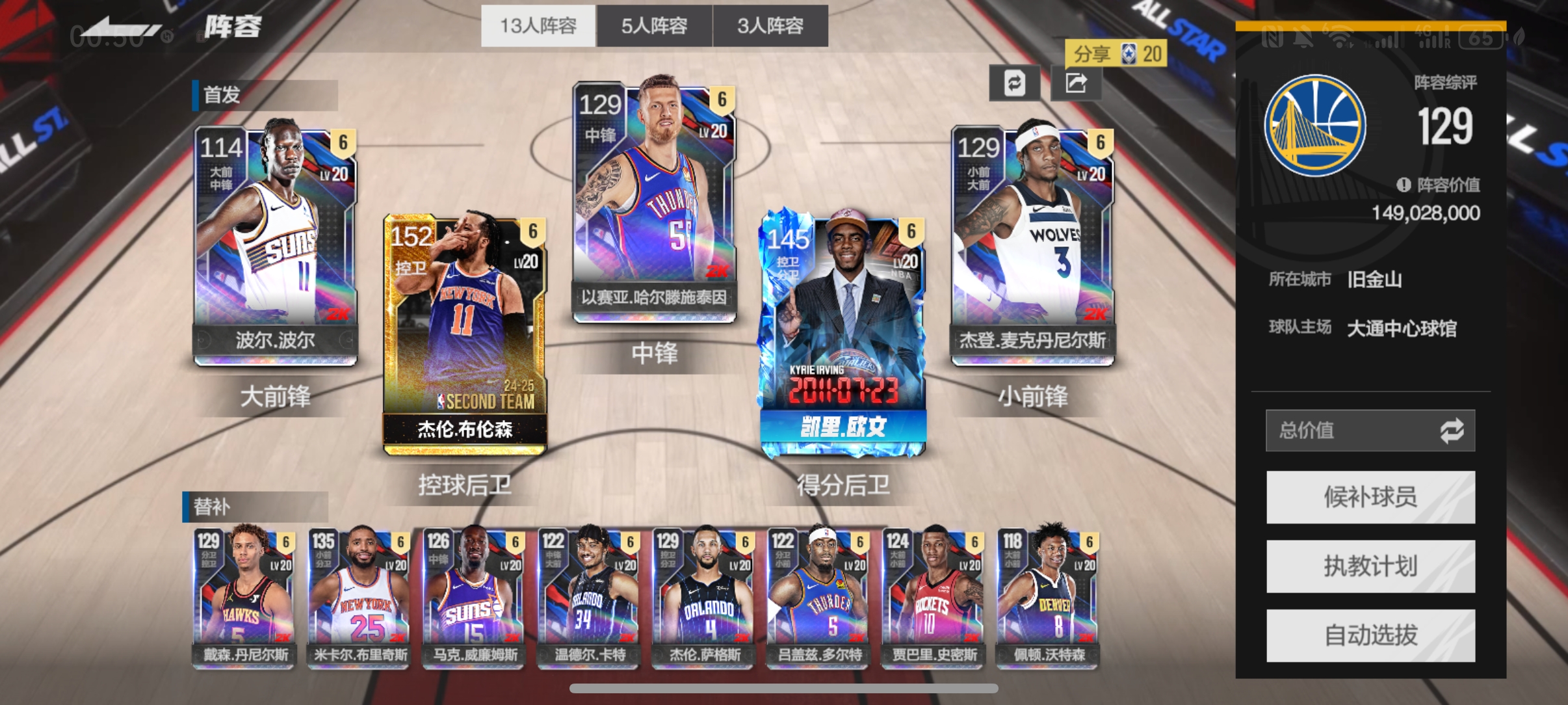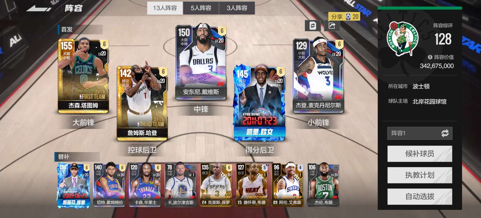坎宁安时刻欧文带队1.2亿阵容