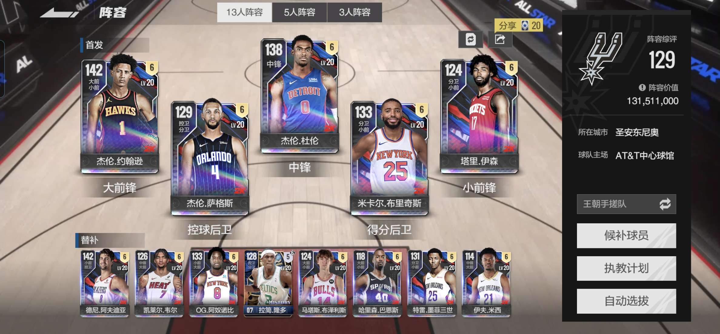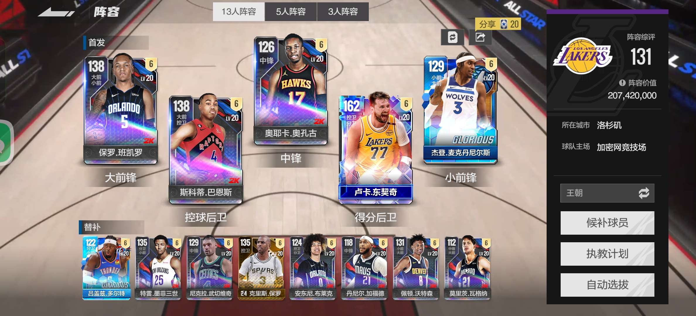 2.1e满时刻东契奇巴恩斯班切罗麦丹沃特森奥孔古 经理王超随便超巨 季后赛球员还要涨价