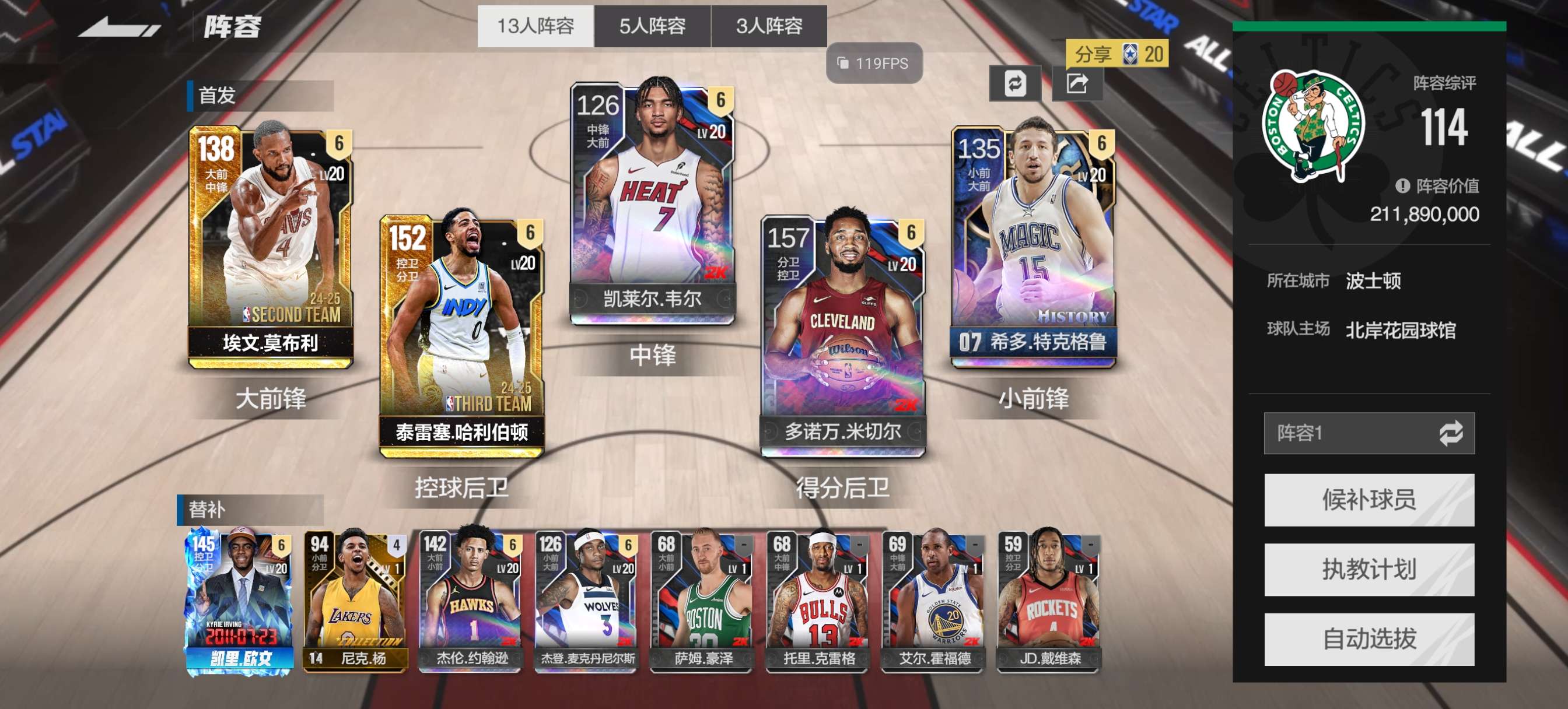 米切尔时刻欧文莫布里班凯罗带队两亿潜力爆炸阵容,下次更新全部大加强,爽玩到关服