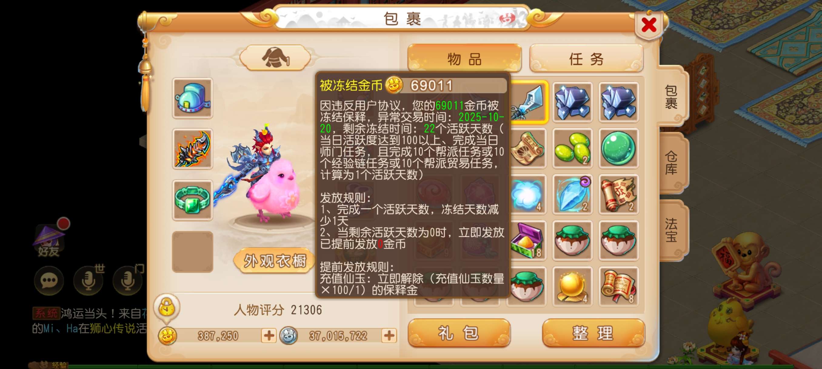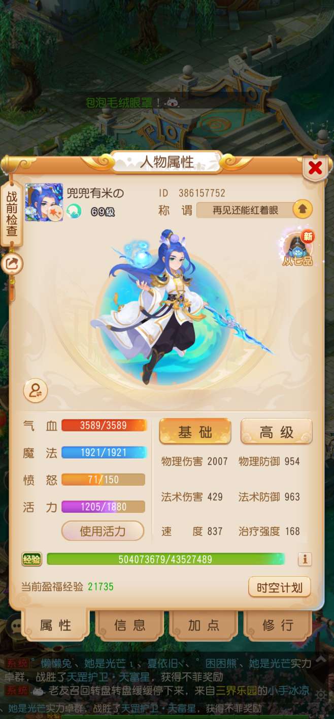 坐骑还有40多w金币,助战猴子满二阶培养,猪八戒永久皮肤,变异龙女满法伤胚子,初始1级法攻49