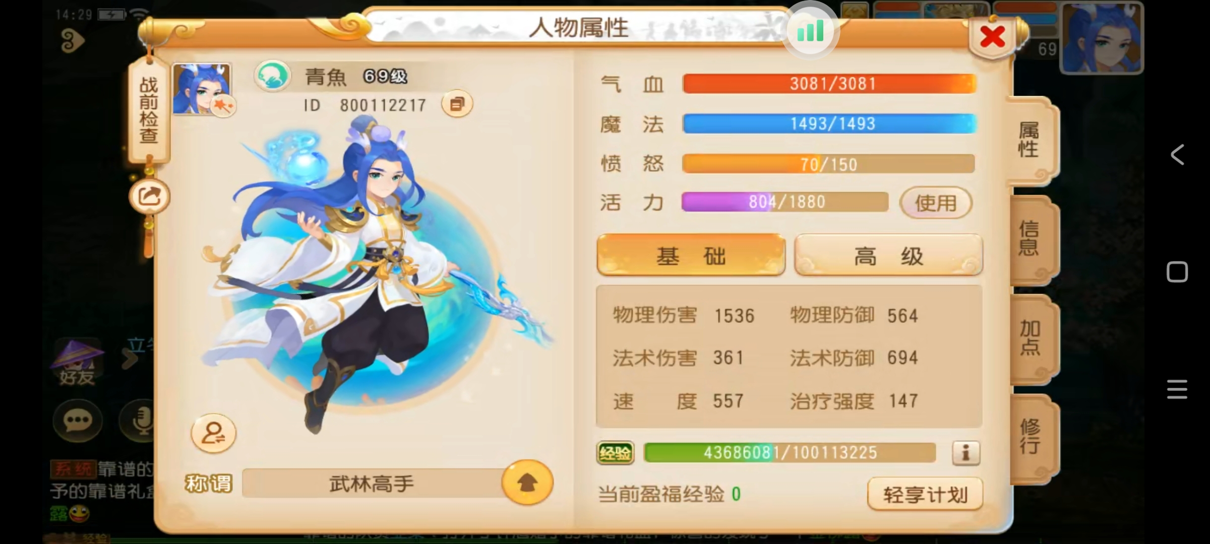 梦幻西游【安卓vivo】全十一段,带全红,,法宝差不多满了