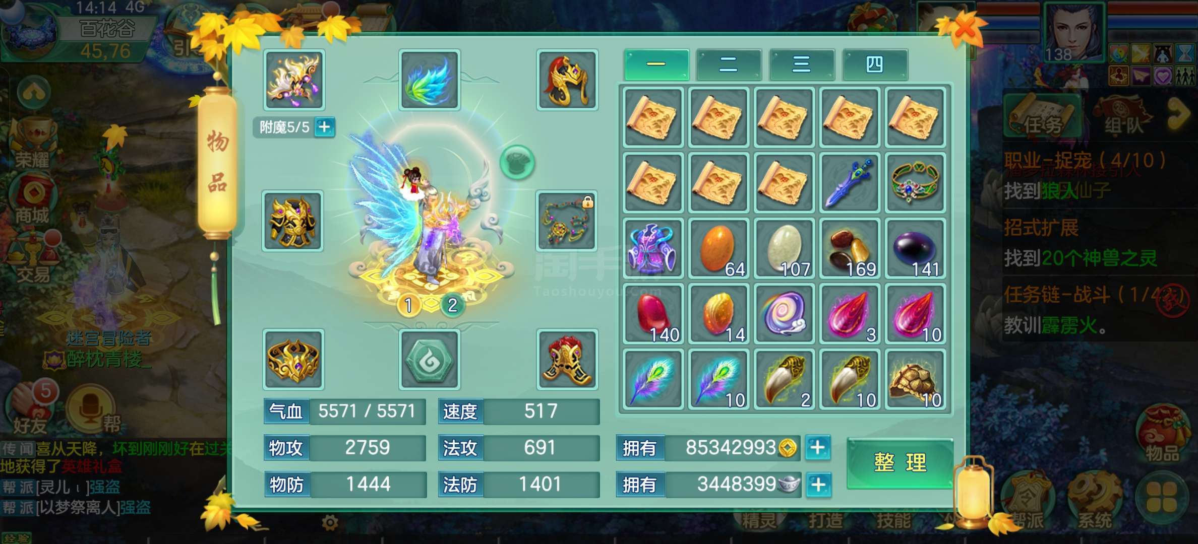 梦想世界【安卓官方】百级巫师,6仙,完美毁灭幽魂,易三孔10+20链子。冷静霸王轮回,