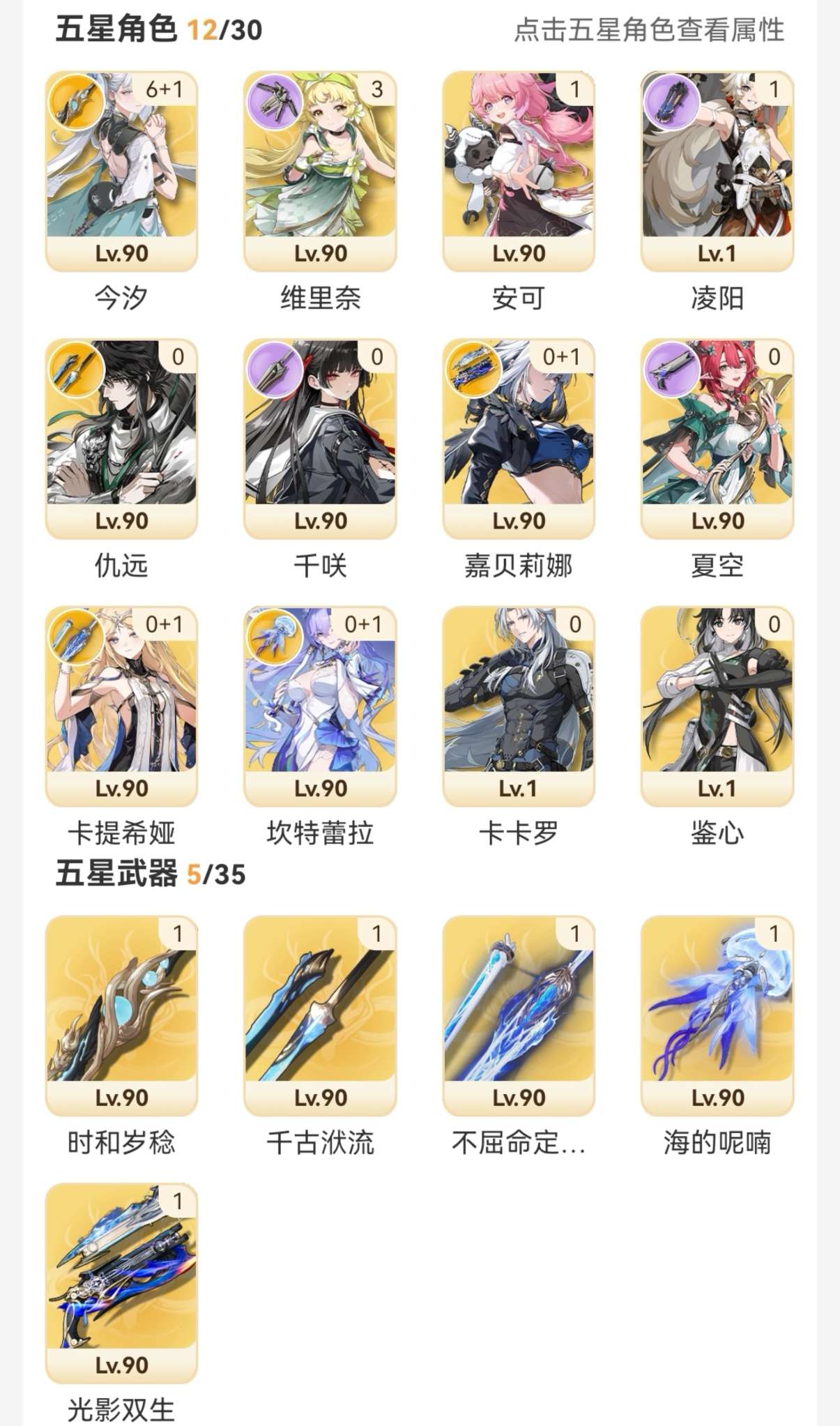 声骸资源超多,地图心声基本没动,海深随便满。配队齐全没时间玩出开服老登号各种主C命座