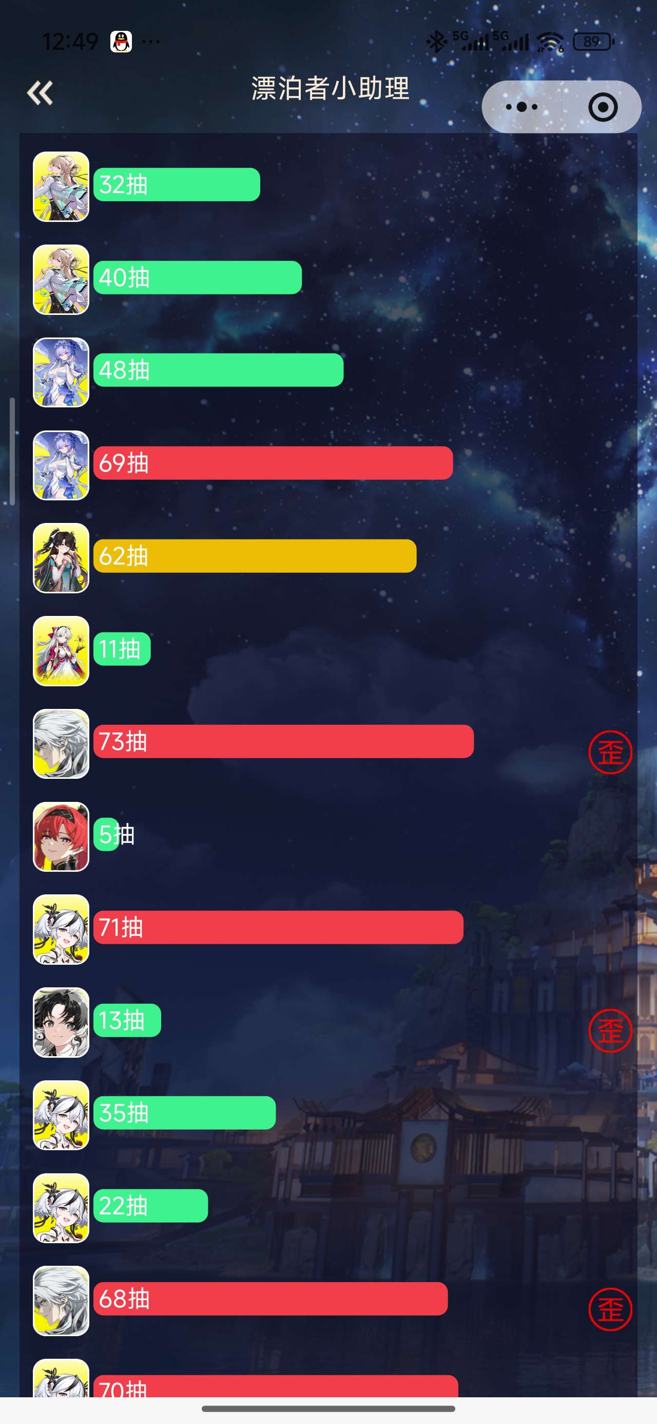 3+2珂莱塔,00守岸人,01弗洛洛,00琳奈,很欧只歪了一次自抽号玩了半年多没封