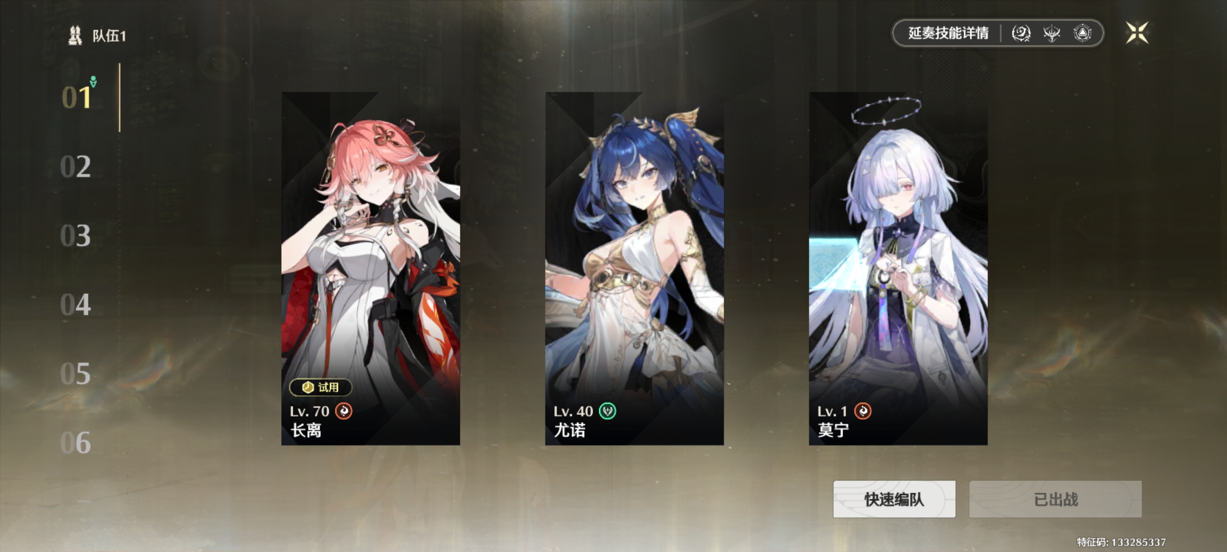 3队 10今汐 01卡提 椿 00折枝 夏空 洛可可 长离 仇远 相里要 忌炎