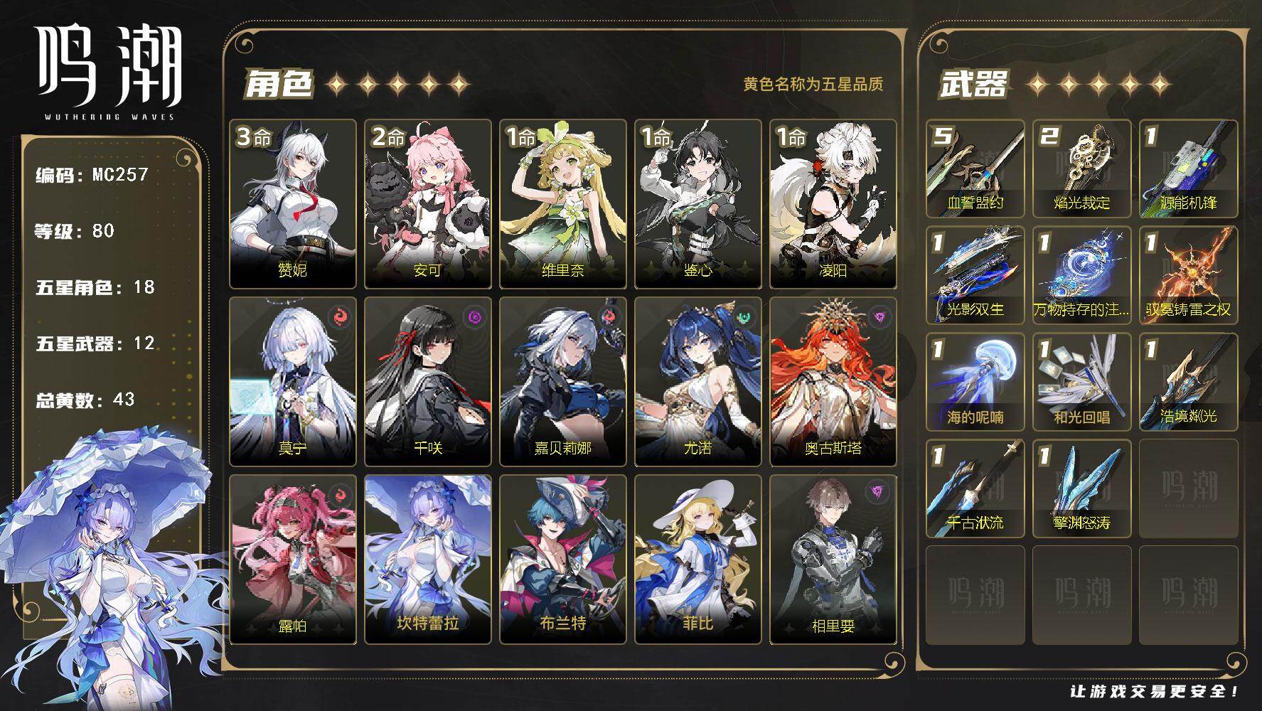 【东南亚服】8级初始今汐+专武+新手自选★可绑手机【东南亚服】