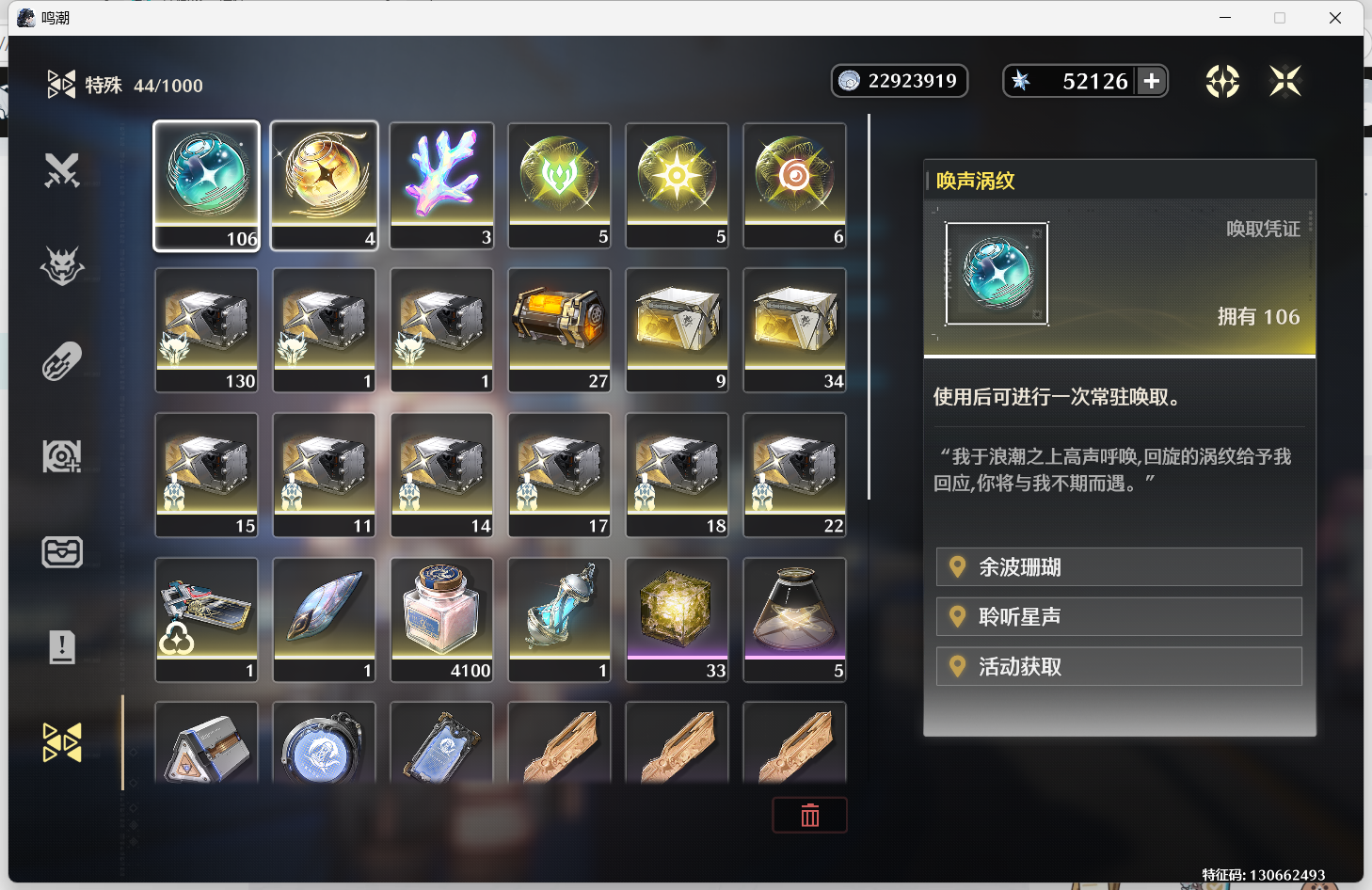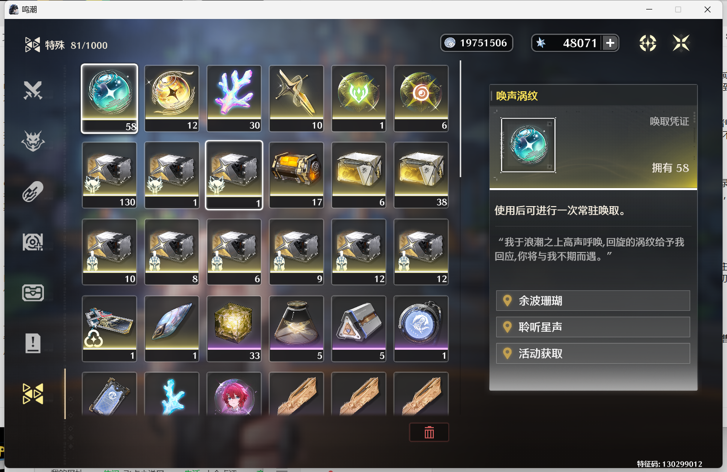 鸣潮【安卓官方】星声48000,唤声58。浮金12。铸金10。多资源未动